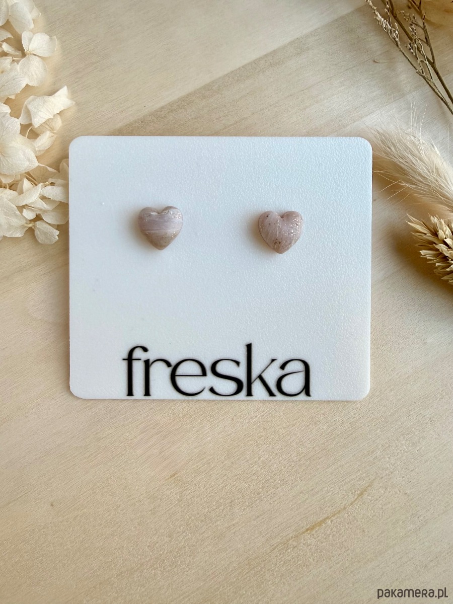Kolczyki wykonywane są ręcznie, dlatego układ marmurkowych smug i ilość drobinek na każdej parze może subtelnie się różnić, co nadaje im niepowtarzalny charakter. Stal chirurgiczna jest hipoalergiczna i odporna na codzienne użytkowanie, dzięki czemu serduszka będą wygodne także dla wrażliwych uszu.
