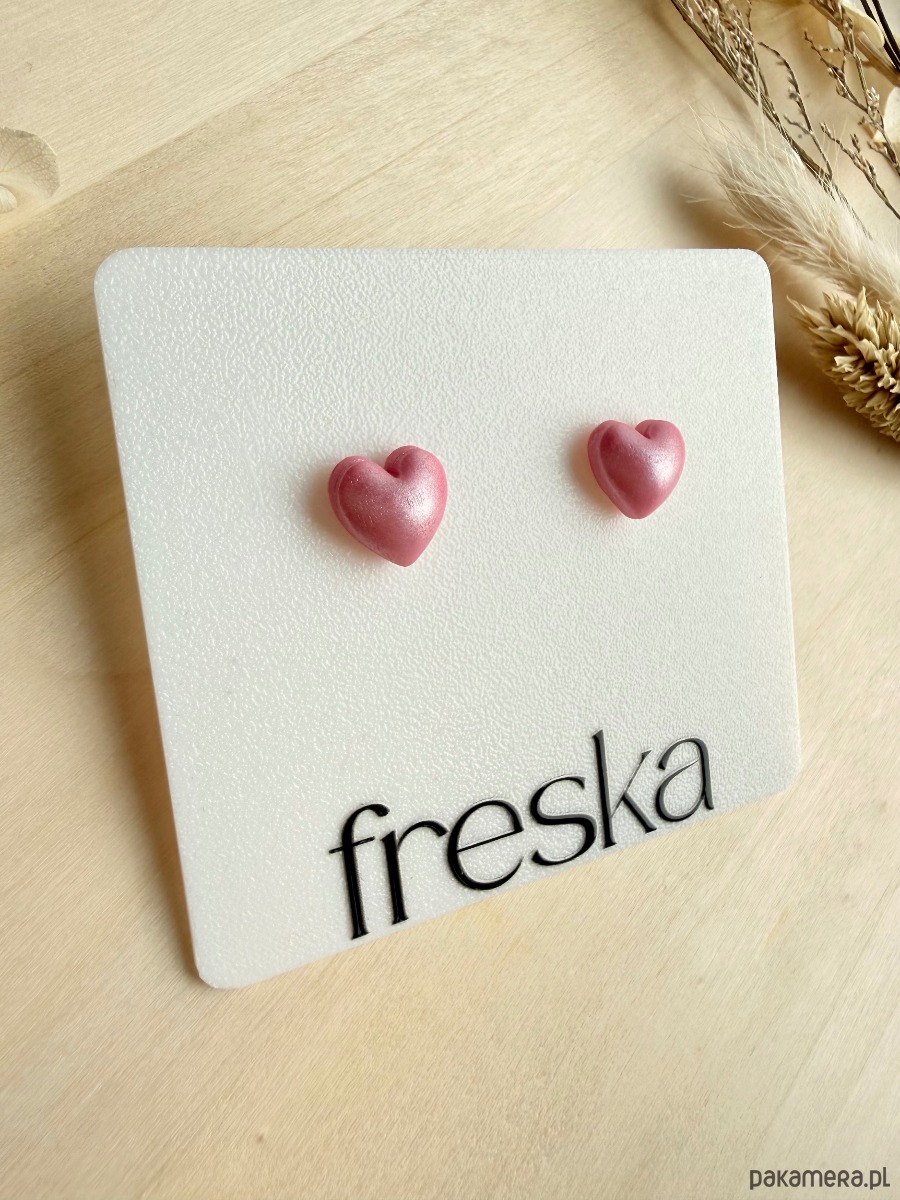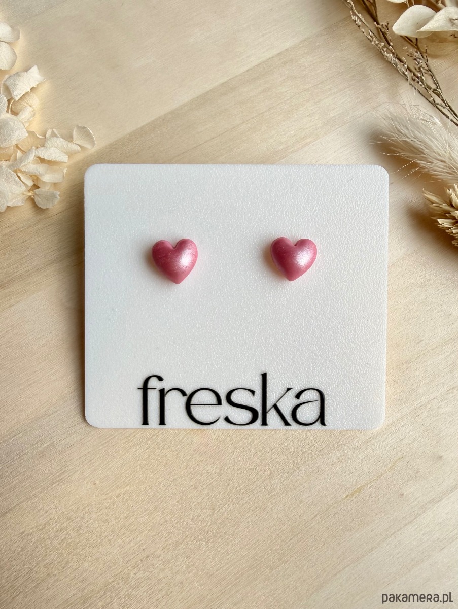 Dodaj do swojej biżuterii odrobinę prawdziwej magii z trójwymiarowymi kolczykami–serduszkami w perłowym odcieniu różu. Ręcznie uformowane z gliny polimerowej serca pięknie połyskują w świetle, tworząc miękki, perłowy efekt, osadzone są na bazie ze stali chirurgicznej – odpowiedniej również dla osób z wrażliwą skórą.