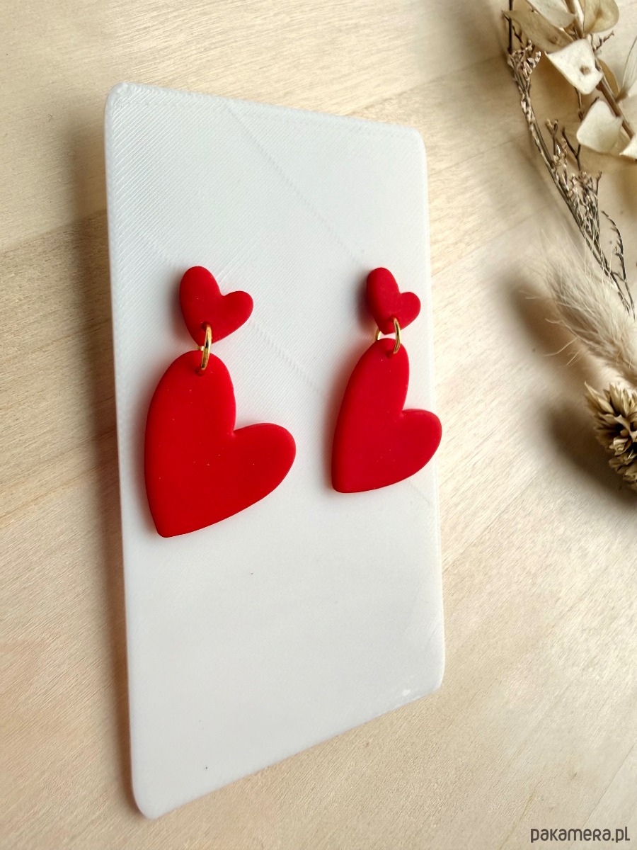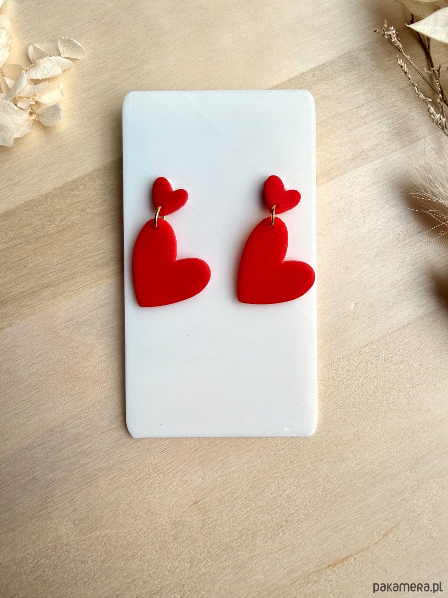 Dodaj do swojej stylizacji sporą dawkę miłosnej energii z ręcznie wykonanymi kolczykami z podwójnym motywem serca! Dynamiczny kształt i intensywnie czerwony kolor sprawiają, że to wyrazisty akcent, idealny na randkę, Walentynki, ale też jako odważny dodatek do codziennych outfitów.