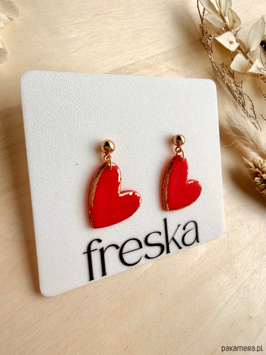 Dodaj do swojej biżuterii odważny, romantyczny akcent z ręcznie wykonanymi kolczykami w kształcie czerwonych serc! Nasycony kolor i złote obramowanie sprawiają, że te kolczyki pięknie przyciągają wzrok i doskonale dopełniają zarówno codzienne stylizacje, jak i zestawy na wyjątkowe okazje.