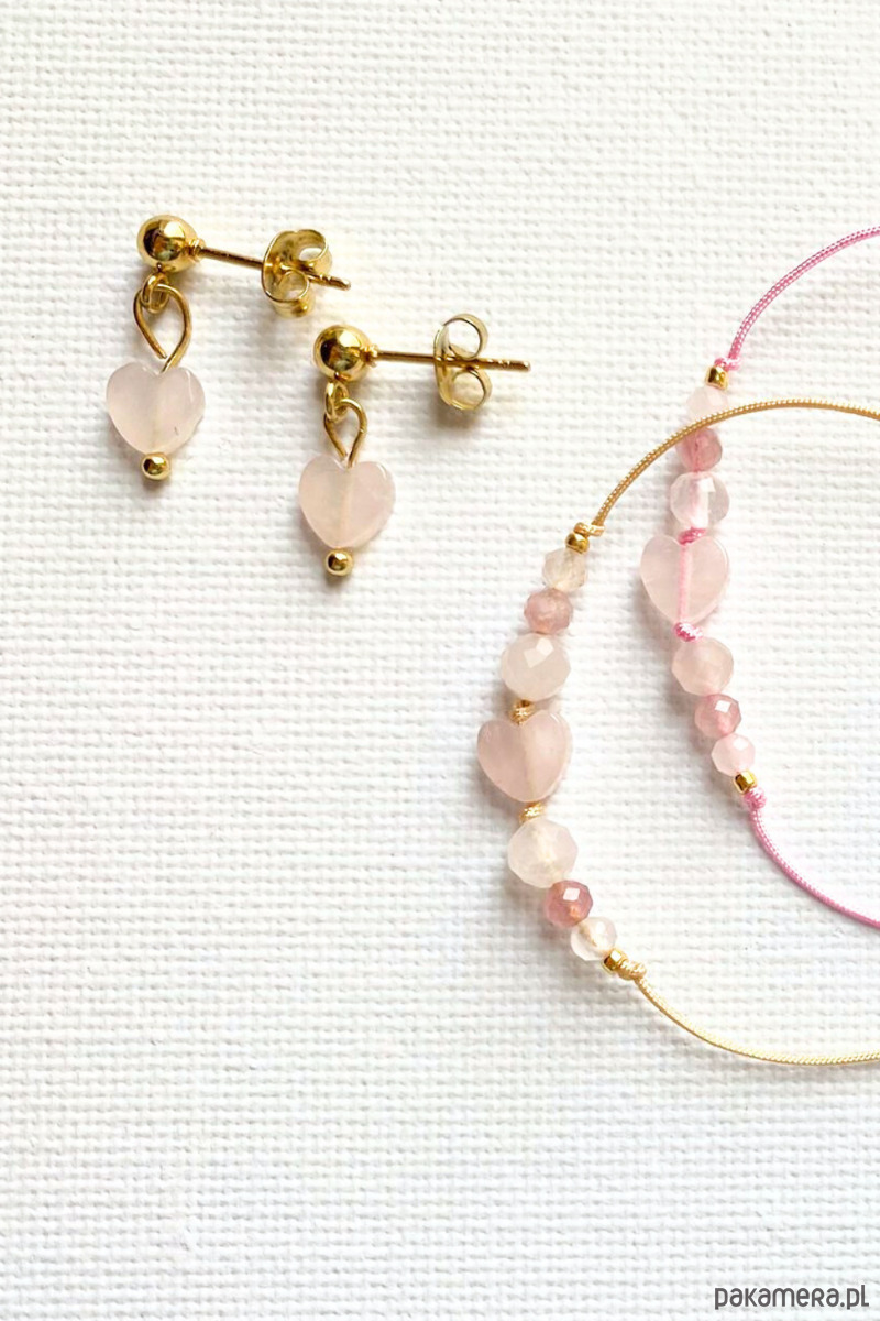 Kolczyki serca z kwarcem różowym