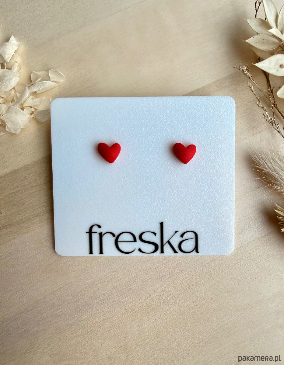 Dodaj mocny, romantyczny akcent z trójwymiarowymi kolczykami–serduszkami w intensywnej czerwieni! Matowe, ręcznie uformowane z gliny polimerowej serca mają miękki, wypukły kształt i są osadzone na bazie ze stali chirurgicznej, dzięki czemu nadają się także dla wrażliwych uszu.
