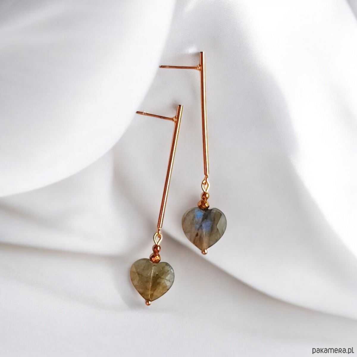 Kolczyki serduszka : LABRADORYT : długie: wyjątkowy prezent