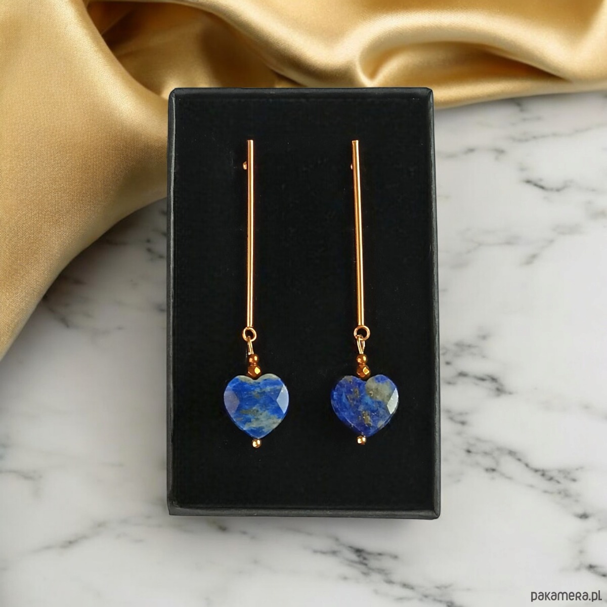 Kolczyki serduszka LAPIS LAZULI : długie : wyjątkowy prezent
