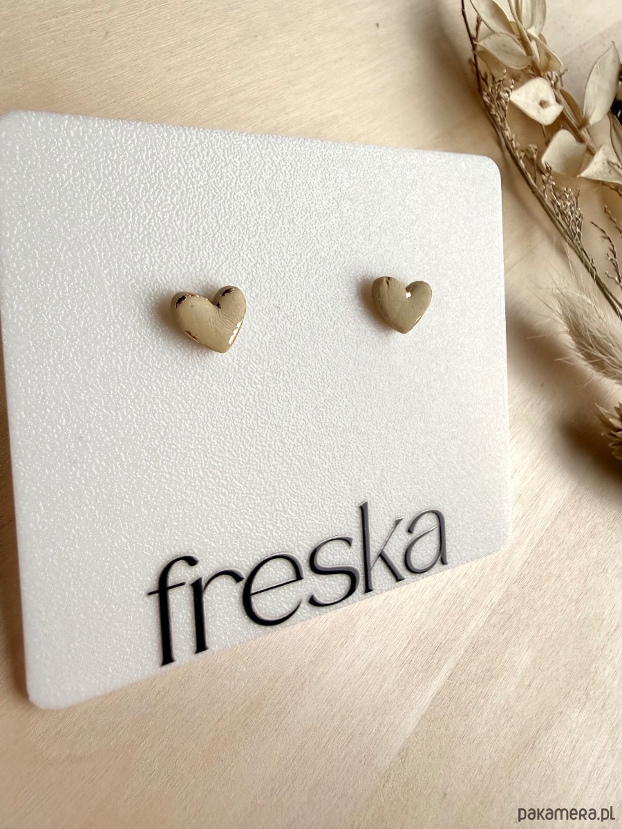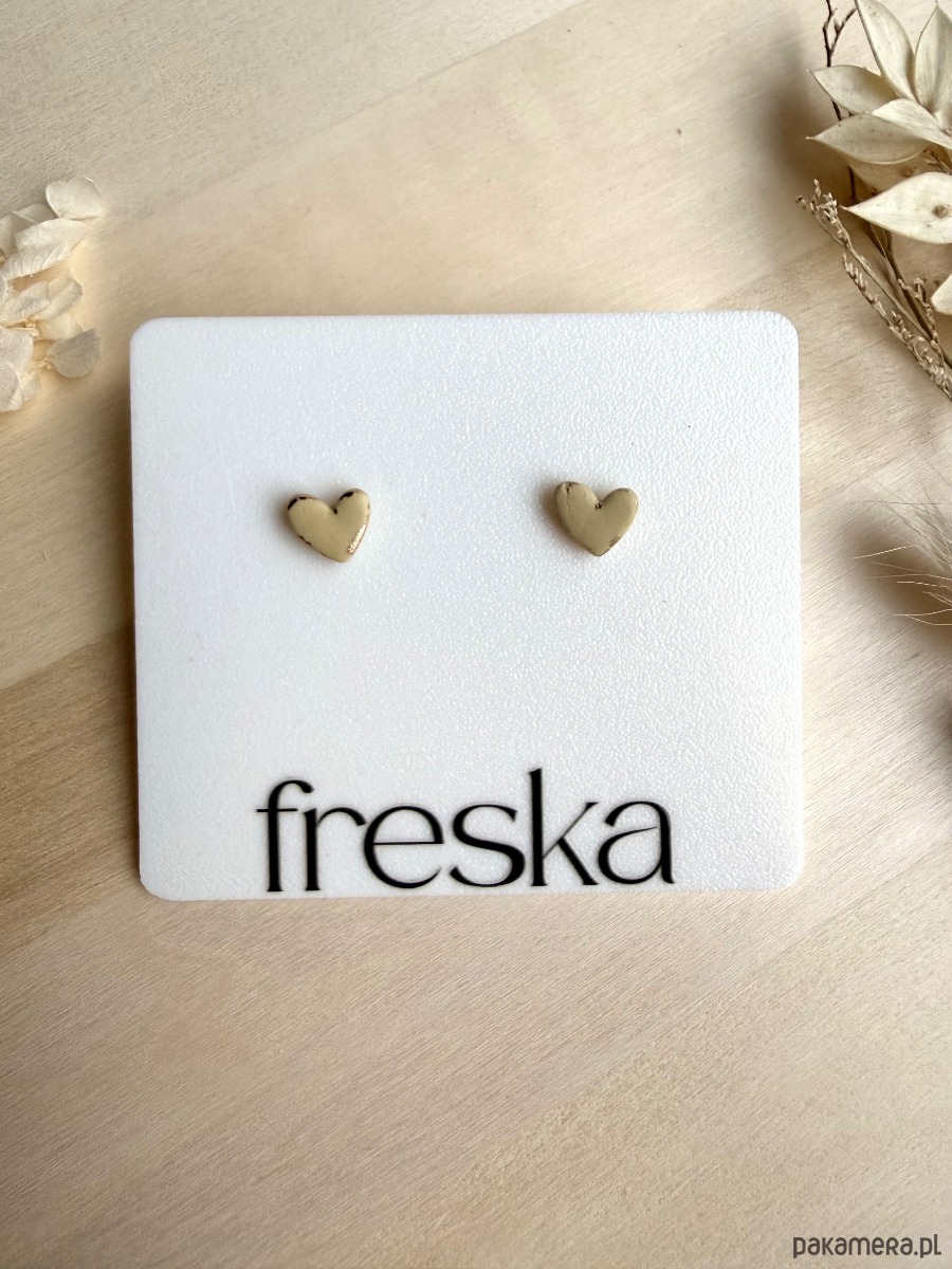Kolczyki Serduszka matowe ze złotem - beżowe