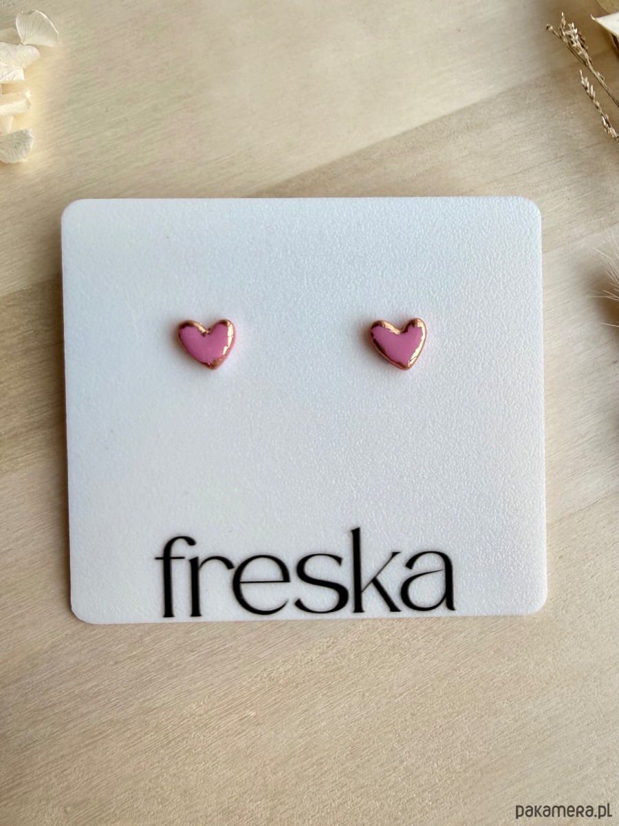 Kolczyki Serduszka matowe ze złotem - różowe