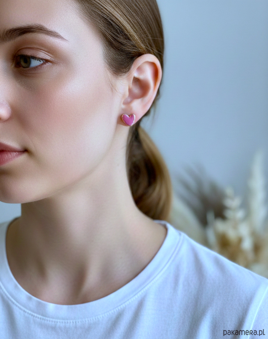 Małe, różowe serduszka z cienką złotą ramką to biżuteria, która od razu przyciąga wzrok, ale nadal pozostaje elegancka. Matowa glina polimerowa w różu pięknie kontrastuje ze złotym brzegiem, a całość osadzona jest na bazie ze stali chirurgicznej, odpowiedniej także dla wrażliwych uszu.