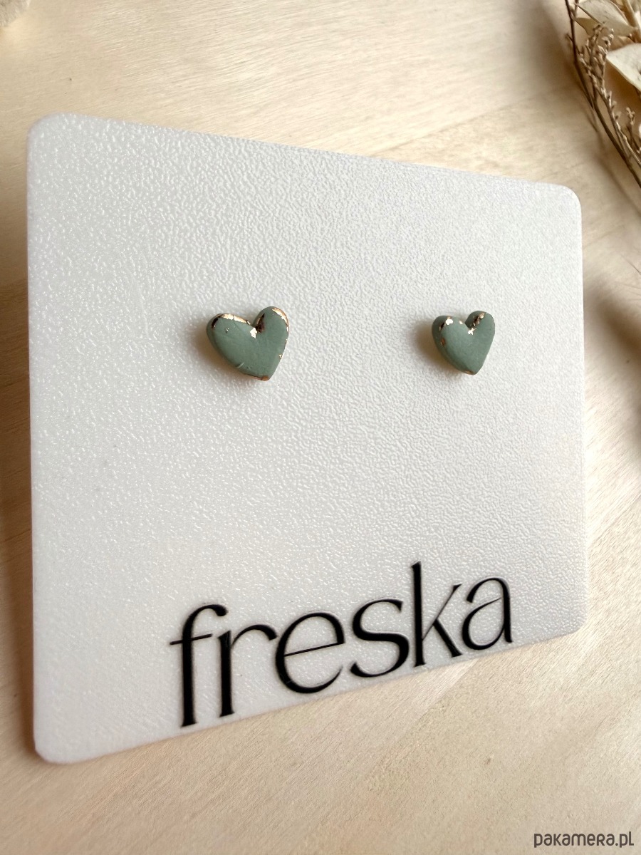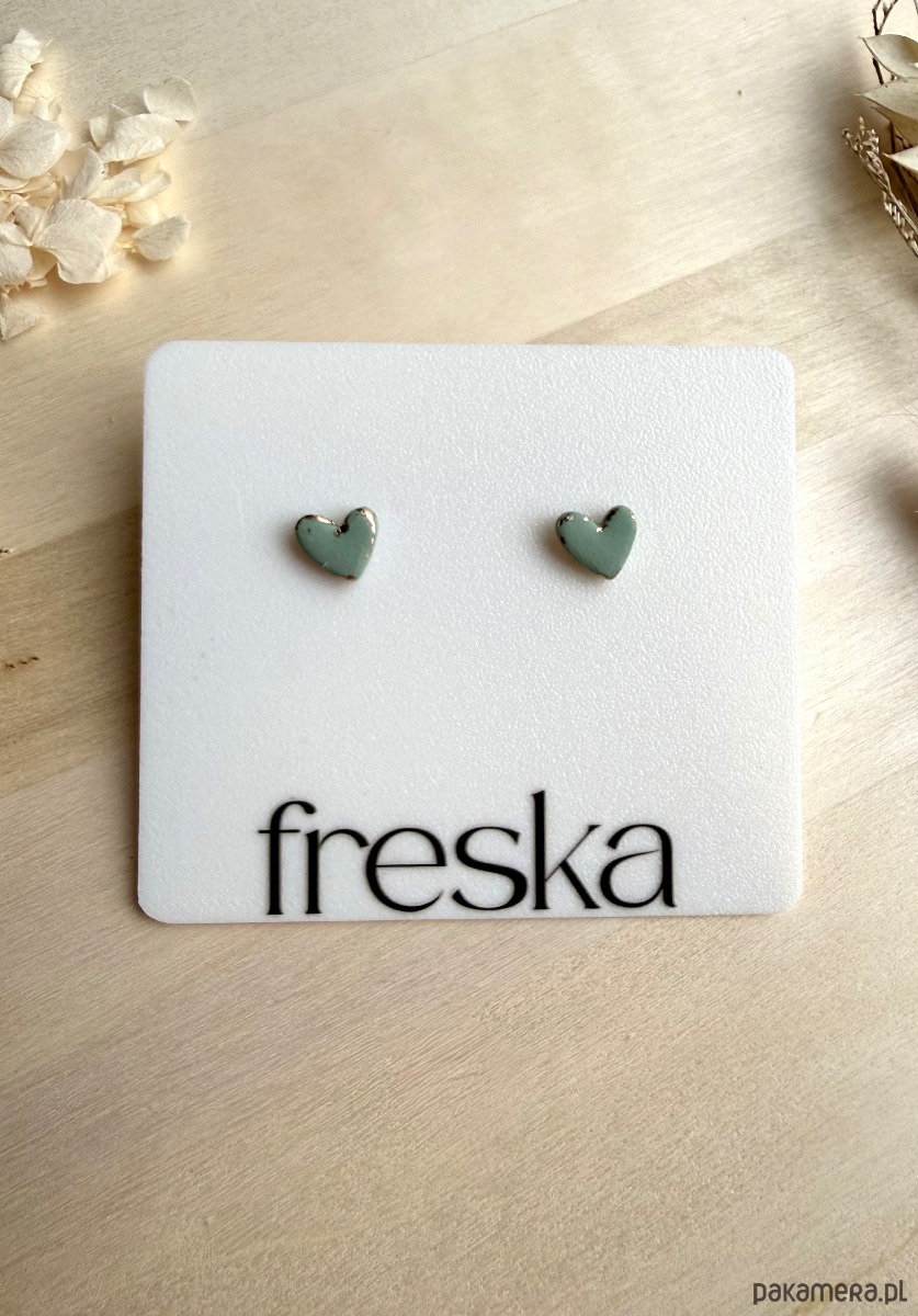 Kolczyki Serduszka matowe ze złotem - szałwiowe