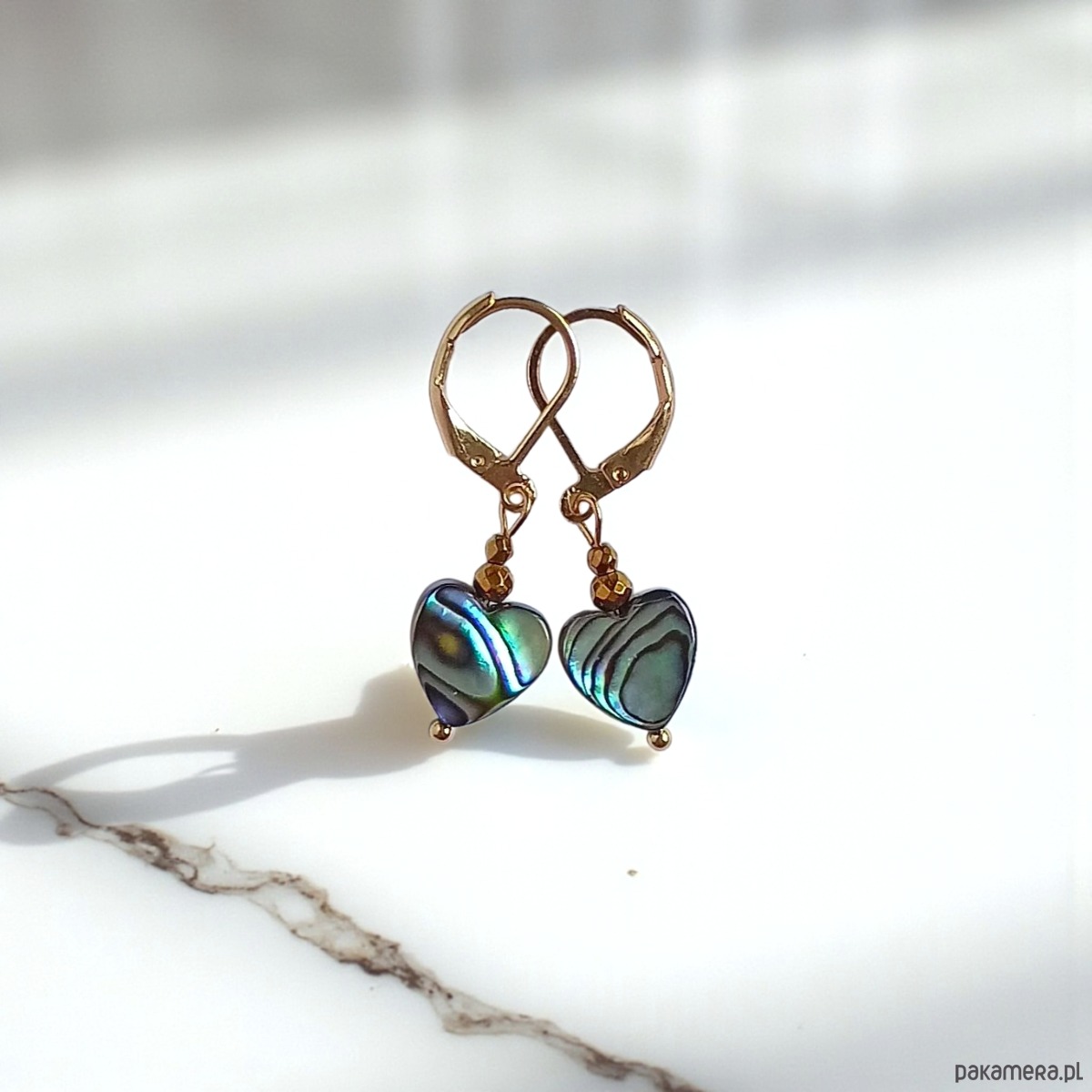 Kolczyki SERDUSZKA muszla paua : bigle angielskie GOLD