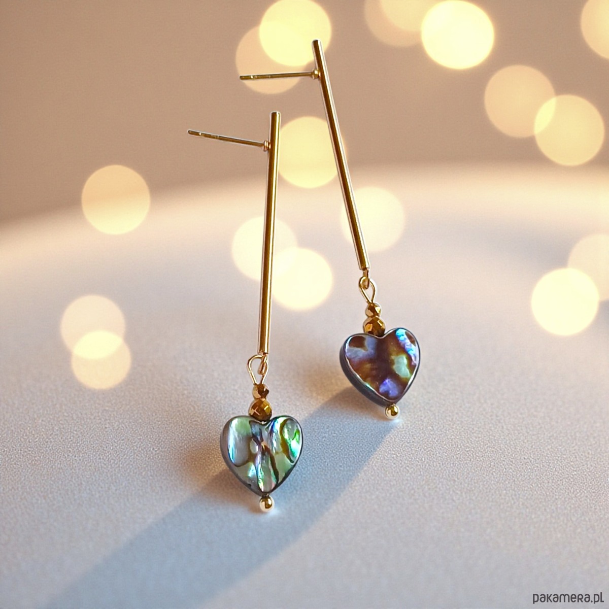 Kolczyki SERDUSZKA muszla paua : długie patyczki GOLD
