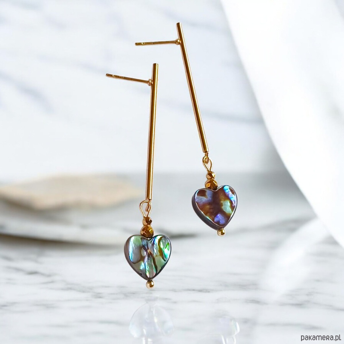 Kolczyki SERDUSZKA muszla paua : długie patyczki GOLD