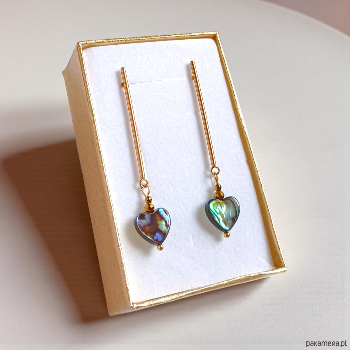Kolczyki SERDUSZKA muszla paua : długie patyczki GOLD