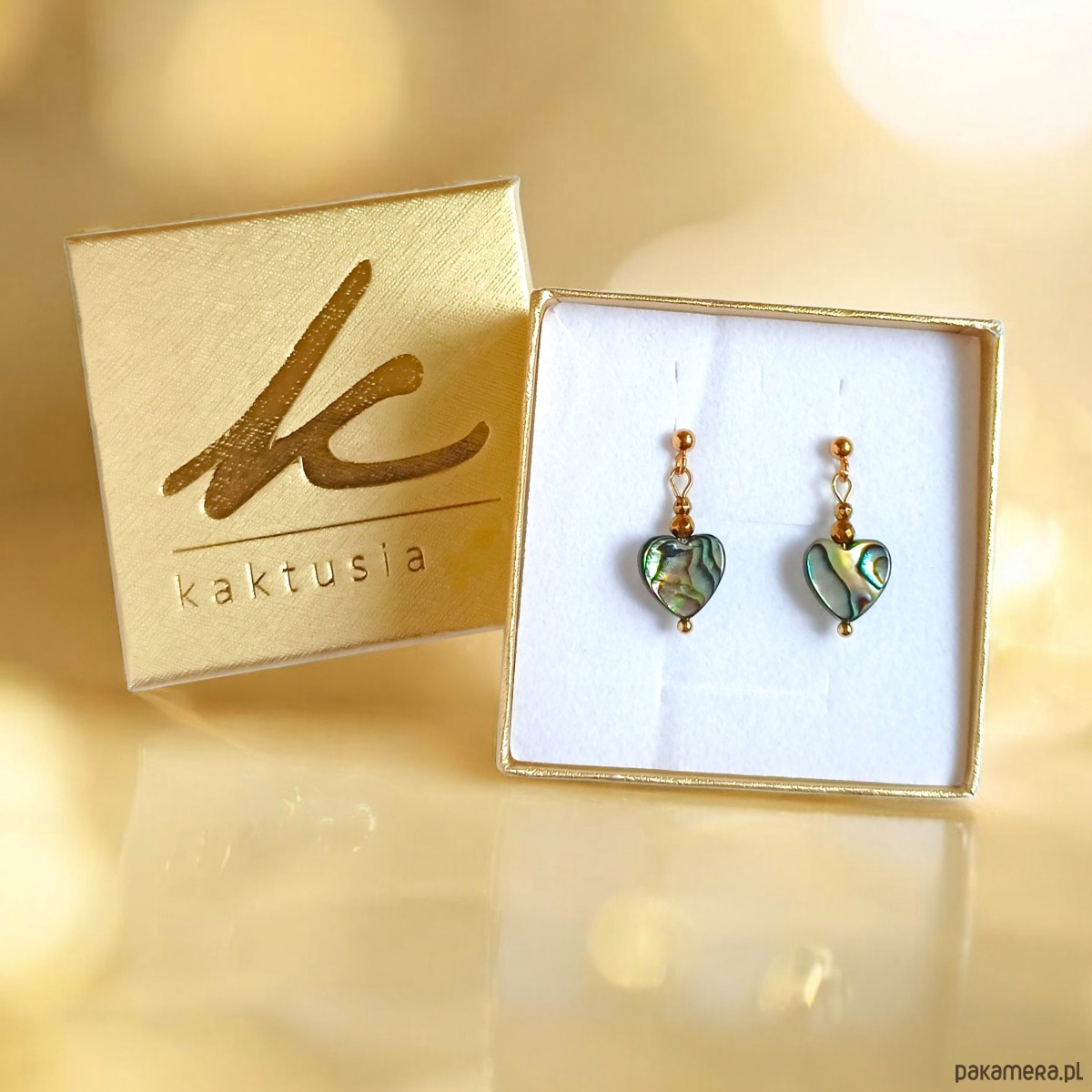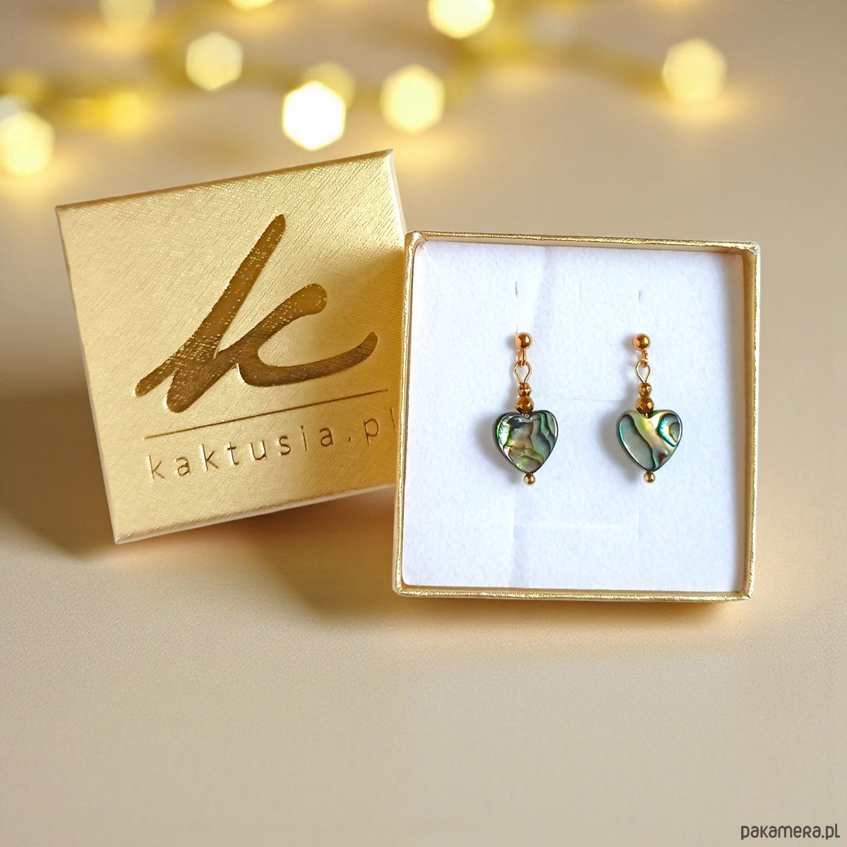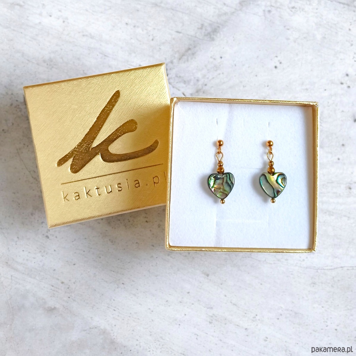 Kolczyki SERDUSZKA muszla paua : sztyfty kuleczki GOLD