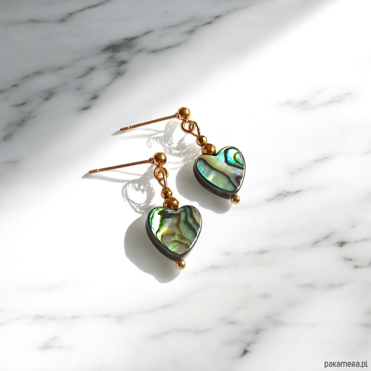 TUTAJ: kolczyki wykonane z przepięknej, opalizującej muszli paua w kształcie serca (ok.10mm)