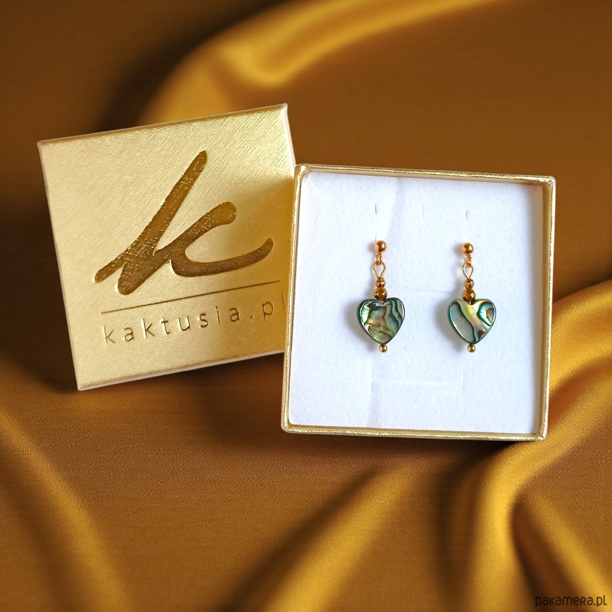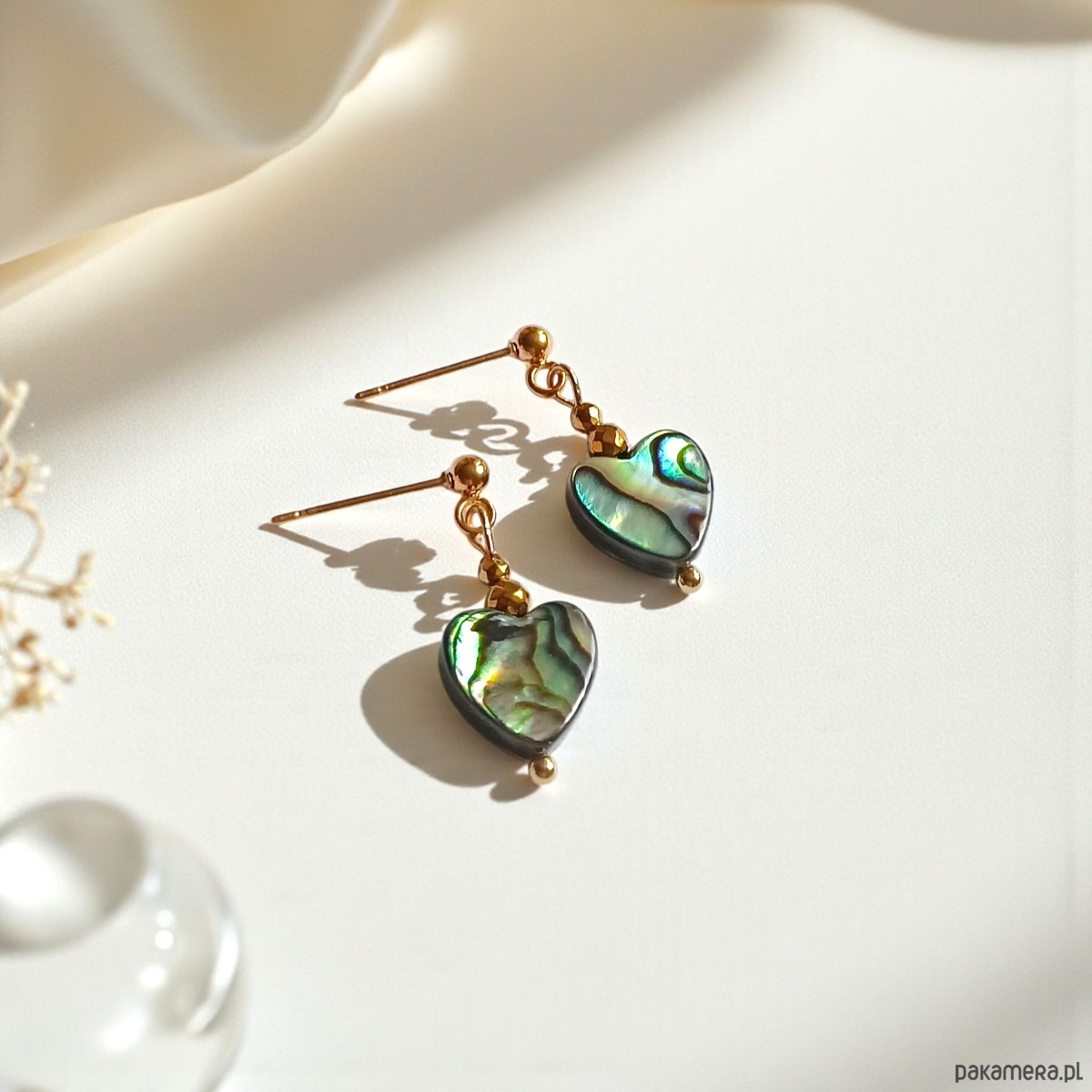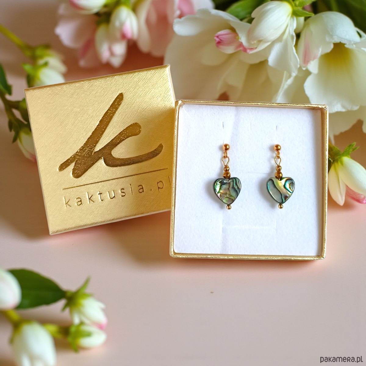Kolczyki SERDUSZKA muszla paua : sztyfty kuleczki GOLD