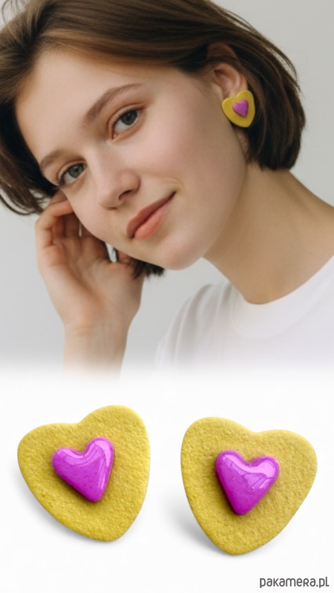 Oryginalne kolczyki wykonane ręcznie z dbałością o szczegóły z profesjonalnej glinki polimerowej, wypalane w piecu i szlifowane w domowej pracowni. Każda para kolczyków jest niepowtarzalna i wyjątkowa. Kolczyki są bardzo lekkie i wygodne, nie obciążają płatka ucha i przyciągają spojrzenia. Zapinane na sztyft ze stali chirurgicznej.