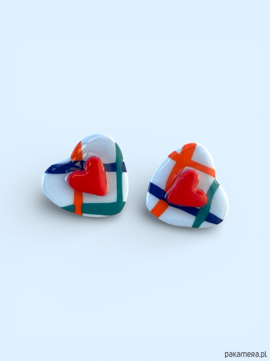Oryginalne kolczyki wykonane ręcznie z dbałością o szczegóły z profesjonalnej glinki polimerowej, wypalane w piecu i szlifowane w domowej pracowni. Każda para kolczyków jest niepowtarzalna i wyjątkowa. Kolczyki są bardzo lekkie i wygodne, nie obciążają płatka ucha i przyciągają spojrzenia. Zapinane na sztyft ze stali chirurgicznej.
