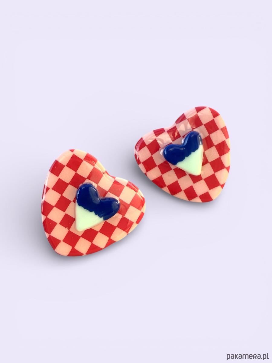 Oryginalne kolczyki wykonane ręcznie z dbałością o szczegóły z profesjonalnej glinki polimerowej, wypalane w piecu i szlifowane w domowej pracowni. Każda para kolczyków jest niepowtarzalna i wyjątkowa. Kolczyki są bardzo lekkie i wygodne, nie obciążają płatka ucha i przyciągają spojrzenia. Zapinane na sztyft ze stali chirurgicznej.