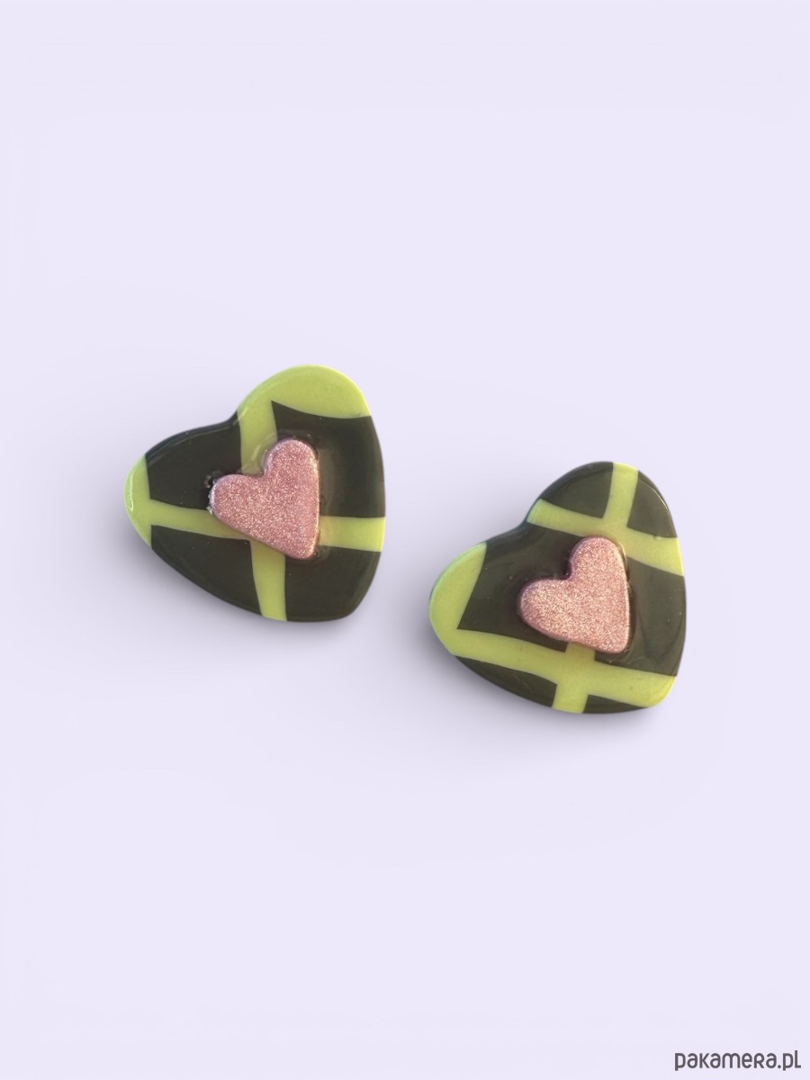 Oryginalne kolczyki wykonane ręcznie z dbałością o szczegóły z profesjonalnej glinki polimerowej, wypalane w piecu i szlifowane w domowej pracowni. Każda para kolczyków jest niepowtarzalna i wyjątkowa. Kolczyki są bardzo lekkie i wygodne, nie obciążają płatka ucha i przyciągają spojrzenia. Zapinane na sztyft ze stali chirurgicznej.
