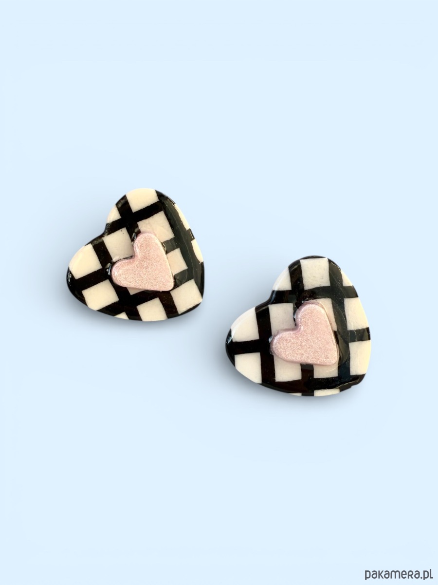 Oryginalne kolczyki wykonane ręcznie z dbałością o szczegóły z profesjonalnej glinki polimerowej, wypalane w piecu i szlifowane w domowej pracowni. Każda para kolczyków jest niepowtarzalna i wyjątkowa. Kolczyki są bardzo lekkie i wygodne, nie obciążają płatka ucha i przyciągają spojrzenia. Zapinane na sztyft ze stali chirurgicznej.