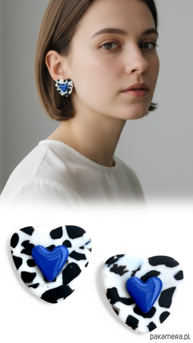 Oryginalne kolczyki wykonane ręcznie z dbałością o szczegóły z profesjonalnej glinki polimerowej, wypalane w piecu i szlifowane w domowej pracowni. Każda para kolczyków jest niepowtarzalna i wyjątkowa. Kolczyki są bardzo lekkie i wygodne, nie obciążają płatka ucha i przyciągają spojrzenia. Zapinane na sztyft ze stali chirurgicznej.