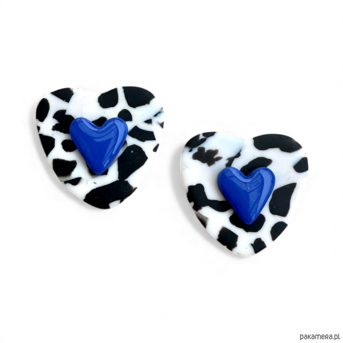 Oryginalne kolczyki wykonane ręcznie z dbałością o szczegóły z profesjonalnej glinki polimerowej, wypalane w piecu i szlifowane w domowej pracowni. Każda para kolczyków jest niepowtarzalna i wyjątkowa. Kolczyki są bardzo lekkie i wygodne, nie obciążają płatka ucha i przyciągają spojrzenia. Zapinane na sztyft ze stali chirurgicznej.