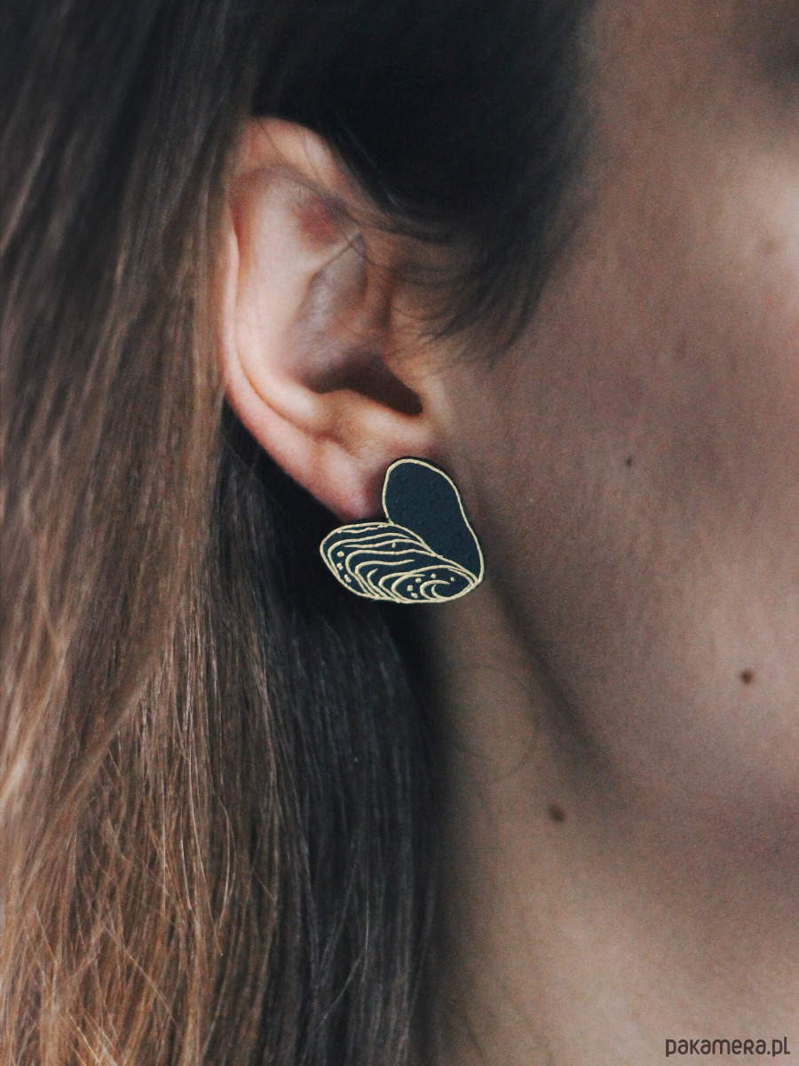 Złoty wzór jest przeze mnie odręcznie wykonany, a to sprawia, że każdy kolczyk delikatnie się różni, jest jedyny w swoim rodzaju.