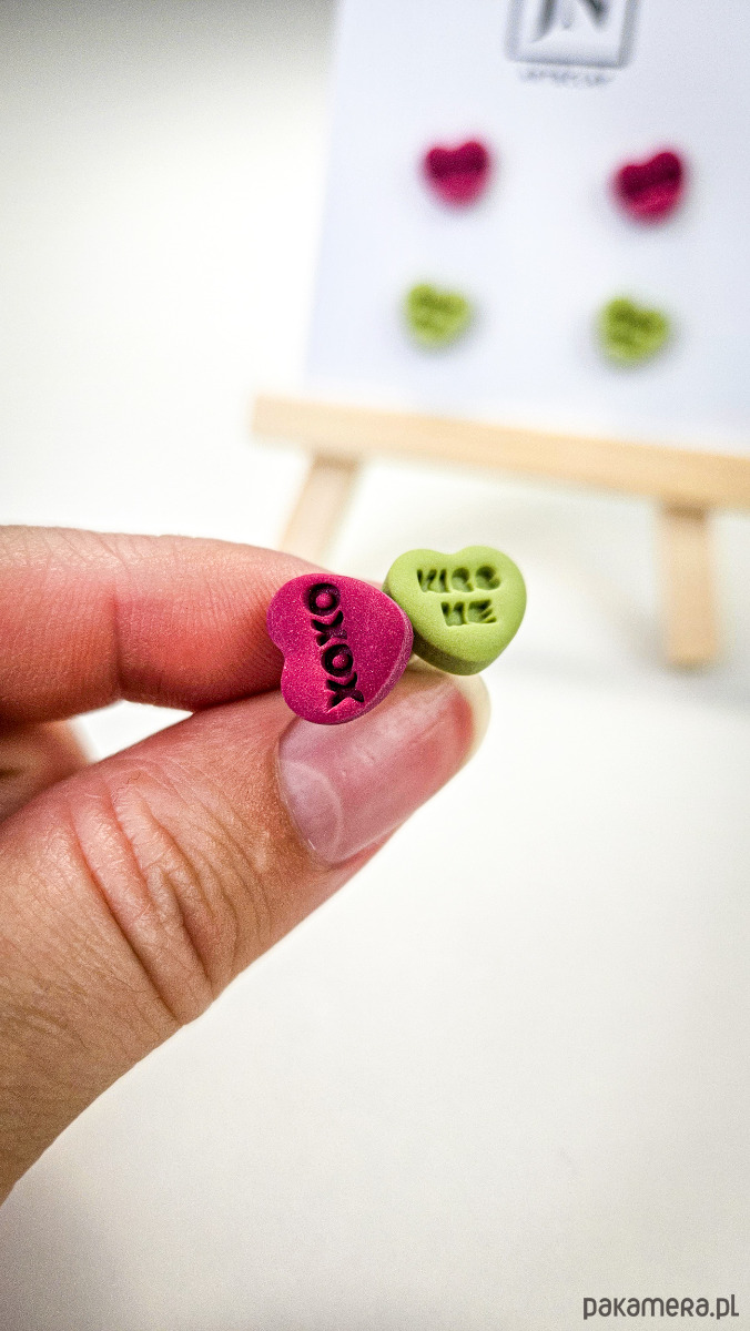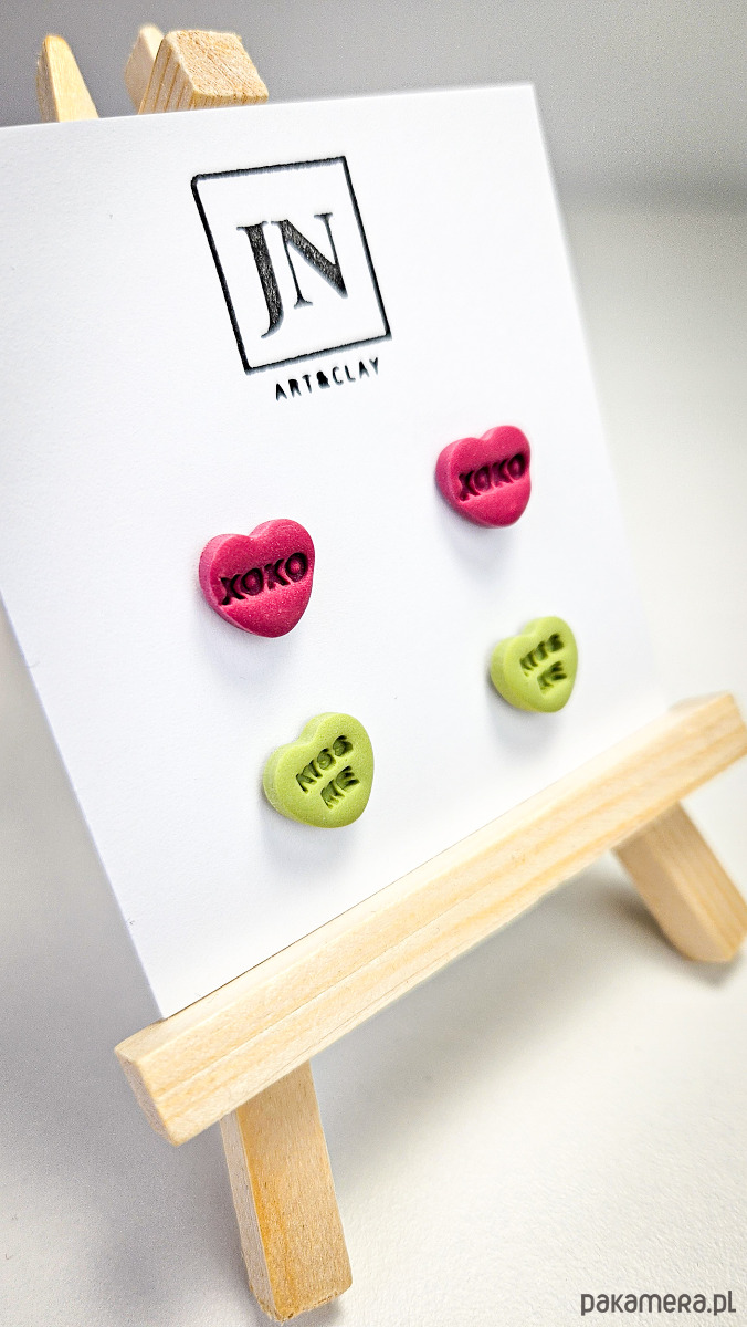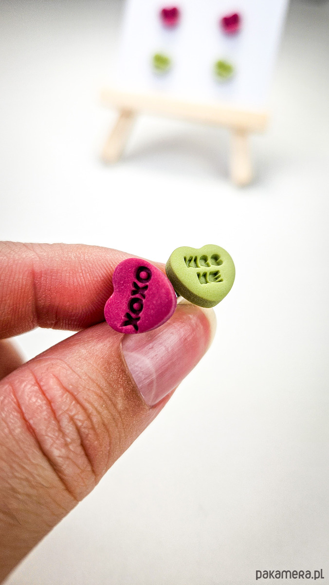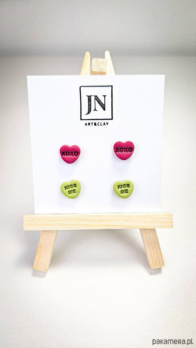 Zestaw 2 par kolczyków w kształcie serca. Te urocze kolczyki są inspirowane walentynkowymi cukierkami. Serduszka są ręcznie wykonane z gliny polimerowej w różnych kolorach. Zapinane na sztyft z barankiem ze stali chirurgicznej. Jest to idealny prezent dla niej na walentynki. Możesz nosić je parami lub mieszać kolory. W mojej ofercie znajdziesz różne wersje kolorystyczne tych kolczyków z różnymi napisami. Idealne dla fanek kolorów i małych słodkich, uroczych kolczyków i dodatków.