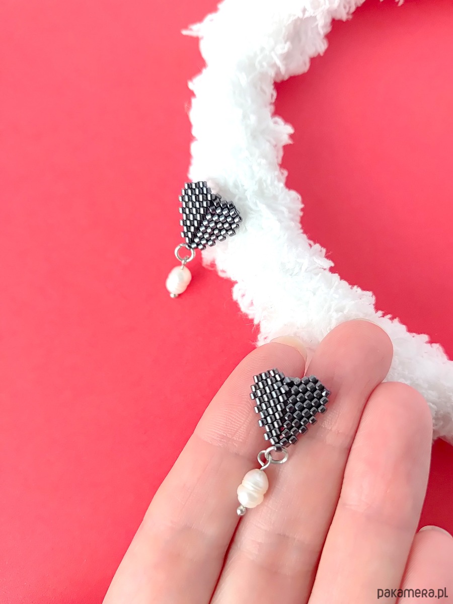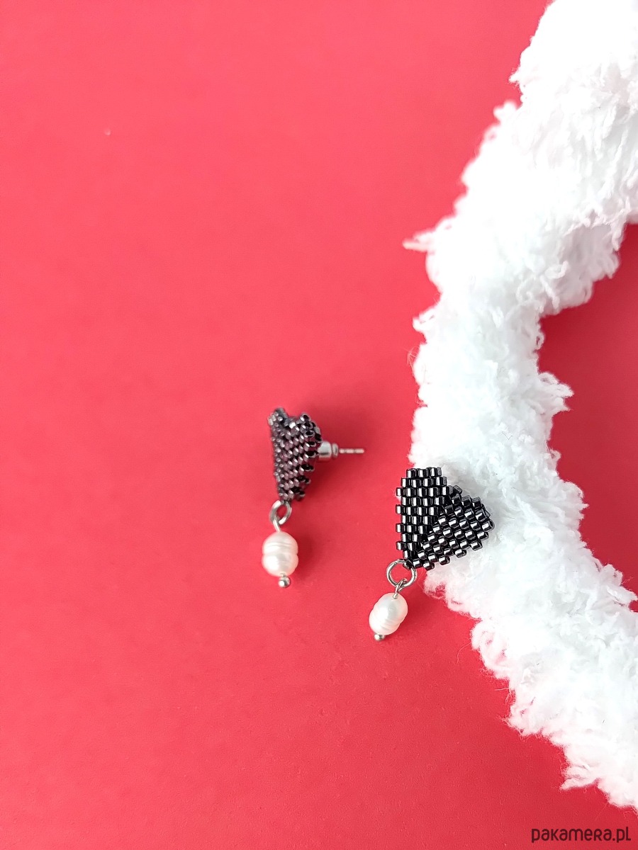Materiały: koraliki japońskie, perły słodkowodne, sztyfty ze stali chirurgicznej