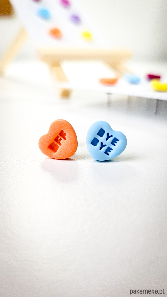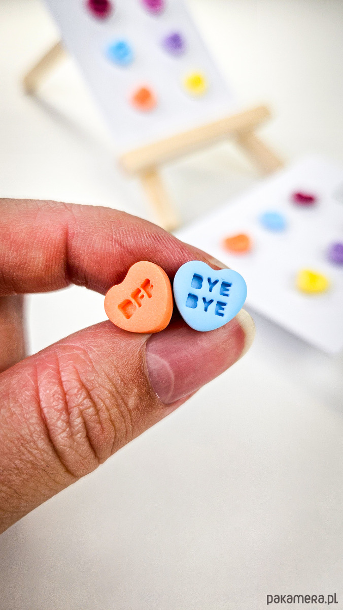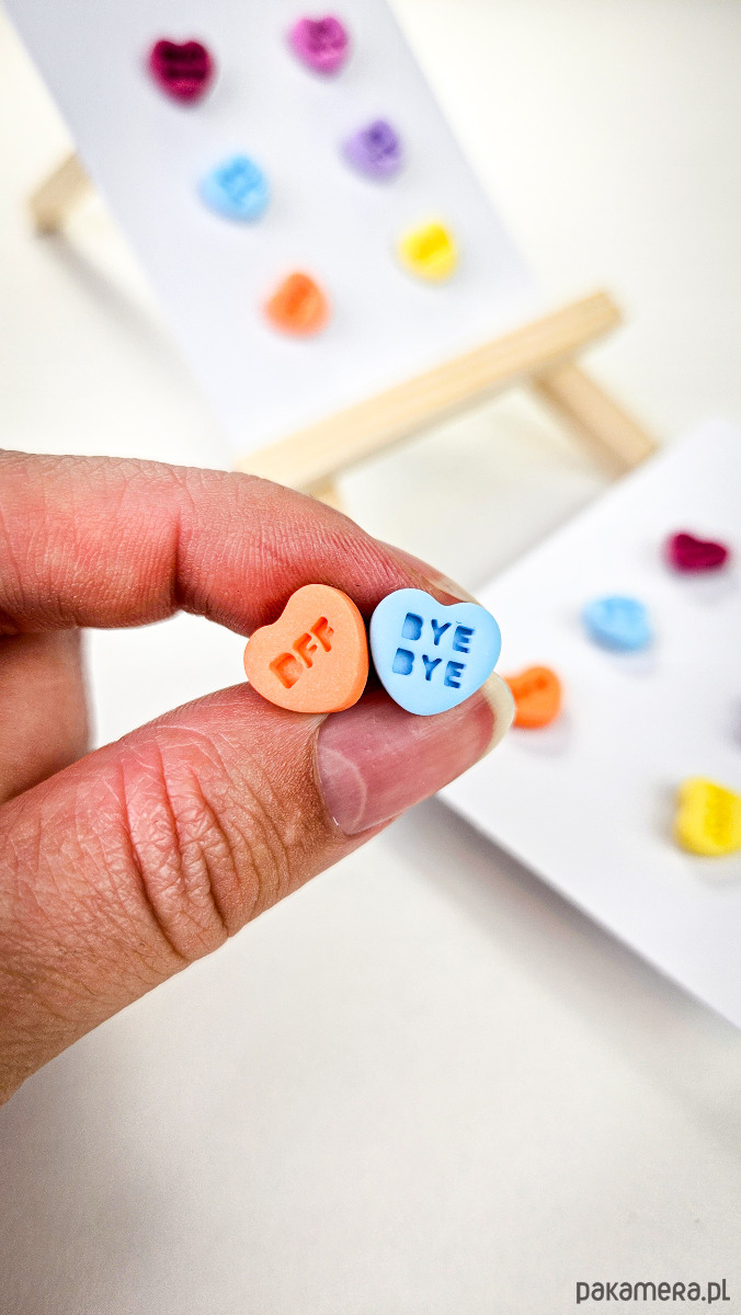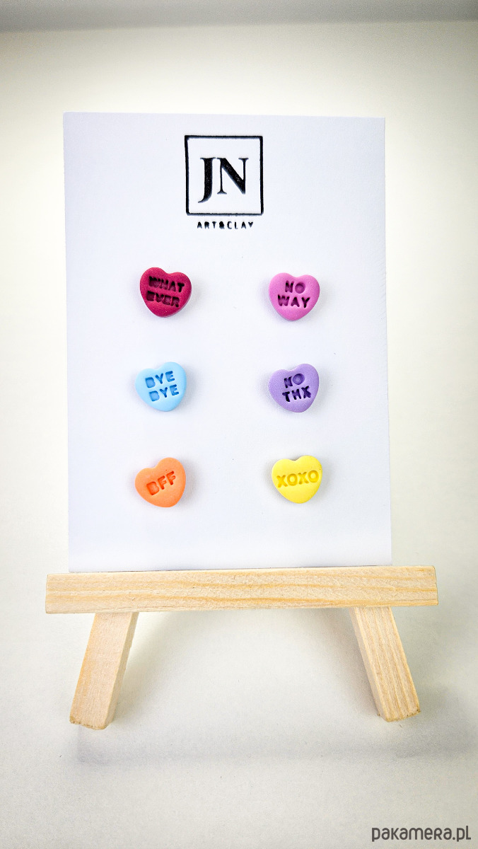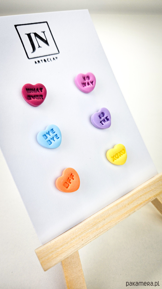 Zestaw 3 par kolczyków w kształcie serca. Te urocze kolczyki są inspirowane walentynkowymi cukierkami. Serduszka są ręcznie wykonane z gliny polimerowej w różnych kolorach. Zapinane na sztyft z barankiem ze stali chirurgicznej. Jest to idealny prezent dla niej na walentynki. Każdy kolczyk jest w innym kolorze, dzięki temu możesz je nosić w różnych kombinacjach w zależności od nastroju i stylizacji. W mojej ofercie znajdziesz różne wersje kolorystyczne tych kolczyków z różnymi napisami. Idealne dla fanek kolorów i małych słodkich, uroczych kolczyków i dodatków.