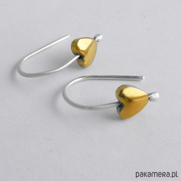 Serduszko kolczyki - uroczy dodatek kolczyki są bardzo eleganckie. Idealne dla kobiet ceniące ładną oraz oryginalna biżuterię. Kolczyki wykonane są ze srebro, Hematyt 0,7 cm. Srebro - próby 0,925, zmatowione, . Długość kolczyków - ok. 1,7 cm