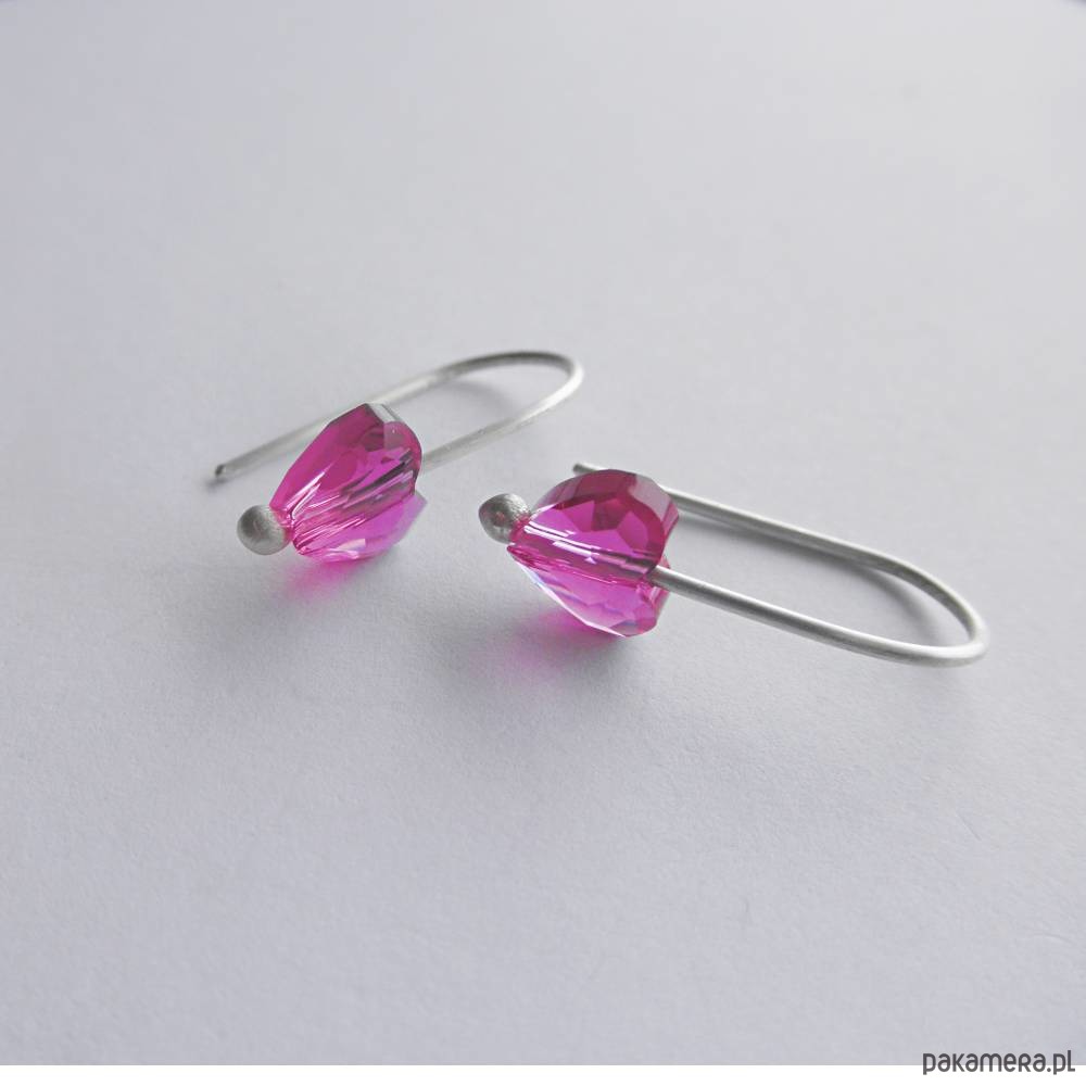 Serduszko kolczyki - uroczy dodatek kolczyki są bardzo eleganckie. Idealne dla kobiet ceniące ładną oraz oryginalna biżuterię. Kolczyki wykonane są ręcznie ze srebro, SWAROVSKI ELEMENTS (Wymiary: długość 6mm, szerokość 8 mm) Srebro - próby 0,925, zmatowione. Długość kolczyków - ok. 2cm