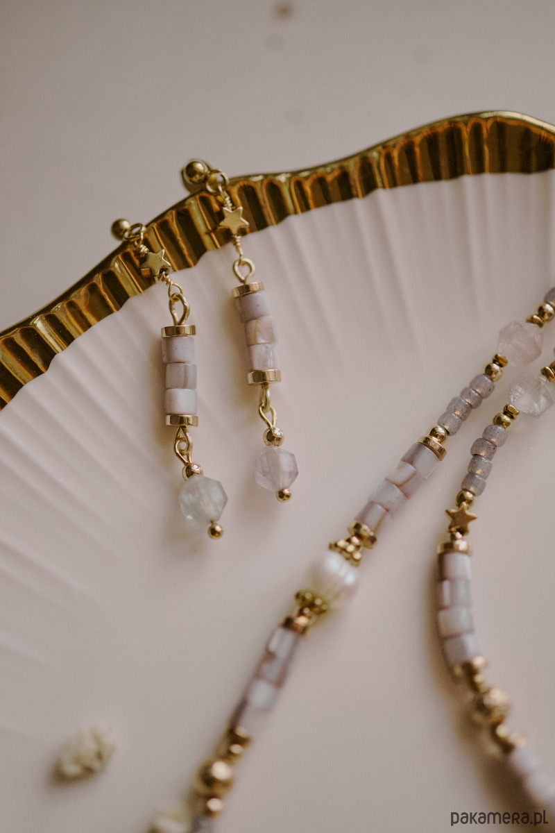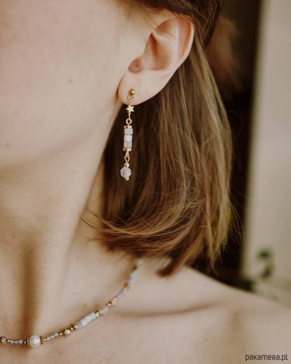 Kolczyki Siwy Dym, fluoryt, masa perłowa; kolekcja El Dorado
