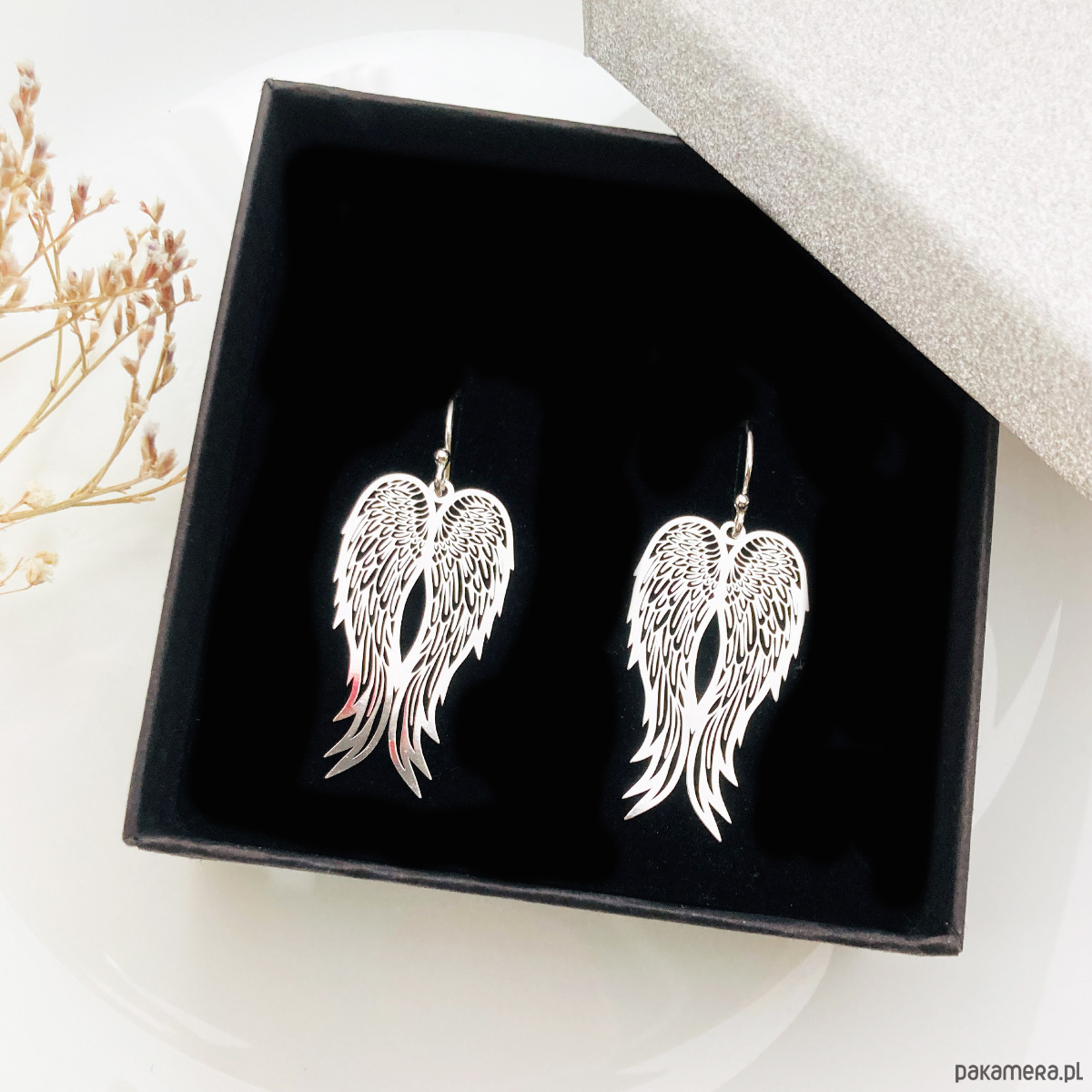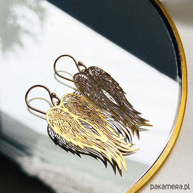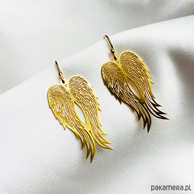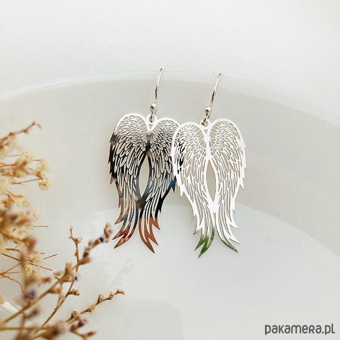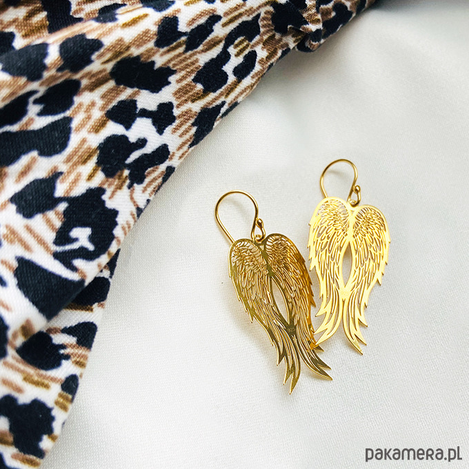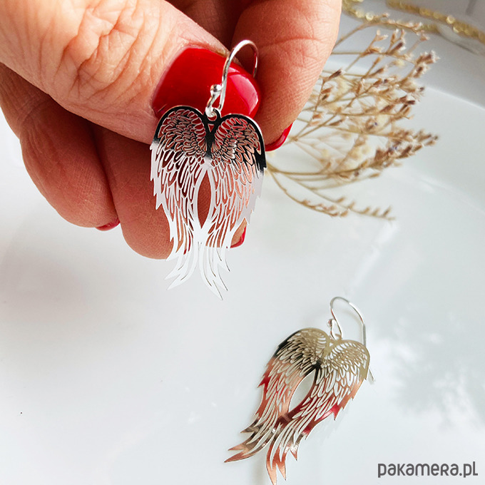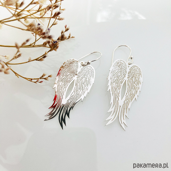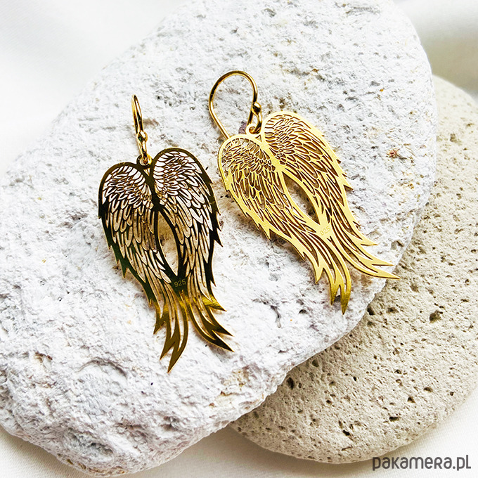 Delikatne duże kolczyki z zawieszkami w kształcie skrzydeł. Unikalna biżuteria doda szyku każdej stylizacji.Wykonane ze srebra próby 925 lub złocone 24 k złotem ( w innej ofercie).