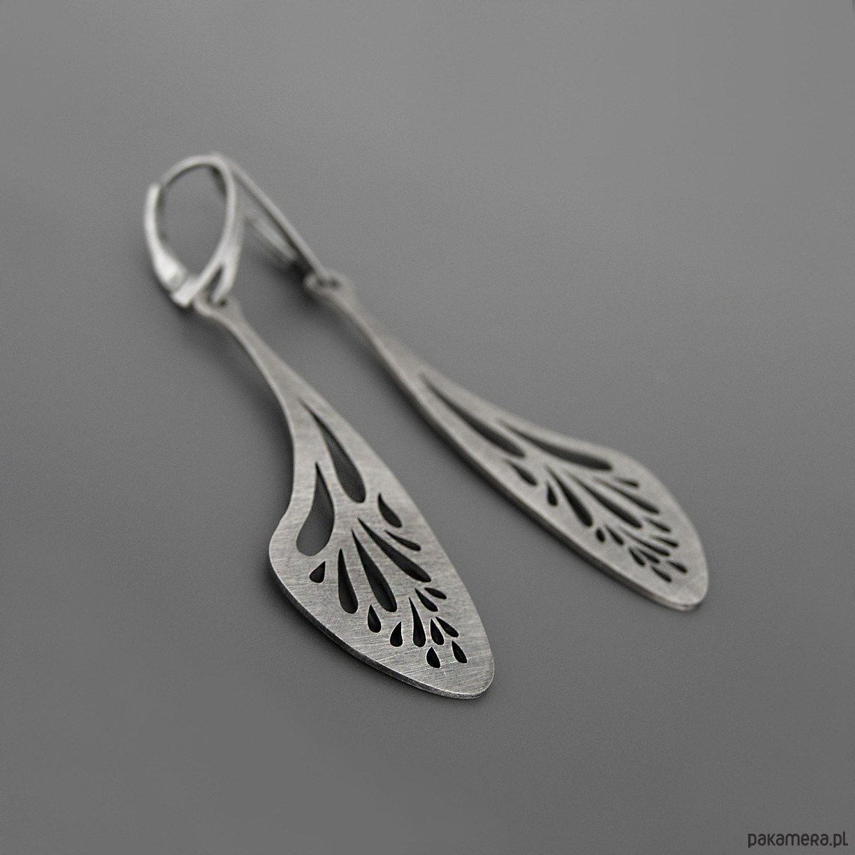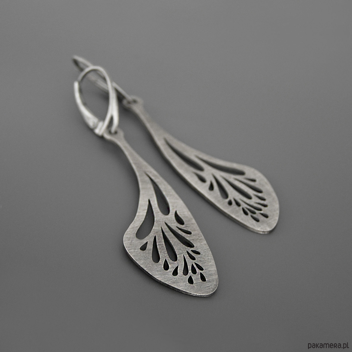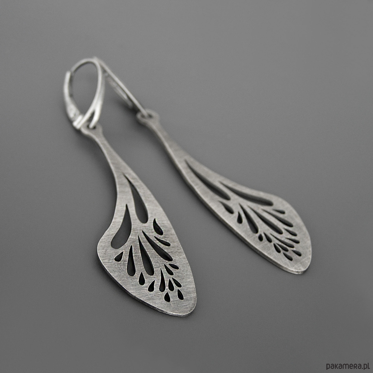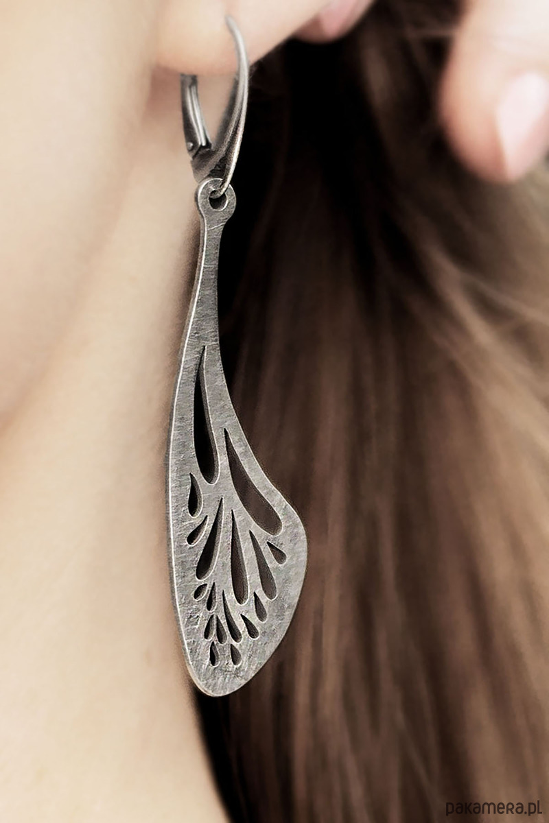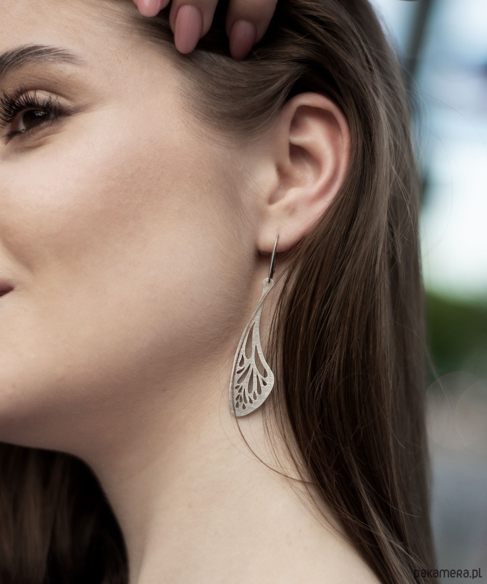 Unikatowe długie kolczyki - ażurowe skrzydła wykonane ze srebra próby 925.