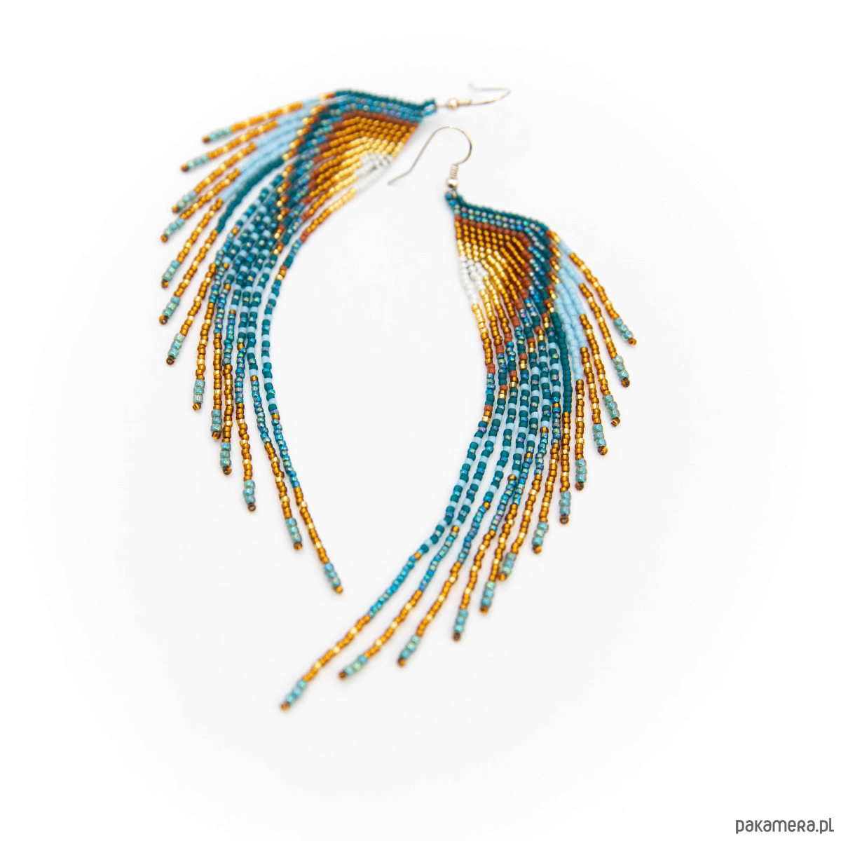 Kolczyki z tej kolekcji wykonane są z najdrobniejszych koralików szklanych japońskich firm Toho oraz Miyuki. Bardzo lekkie i zwiewne. Nie czuć ich ciężaru na uchu dlatego można je nosić cały dzień bez uczucia zmęczenia.