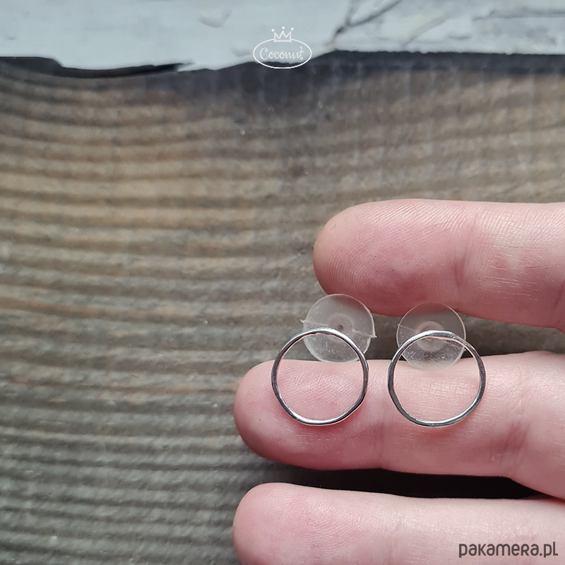 Delikatne kolczyki wykonane ręcznie ze srebra, średnica ok. 13 mm,