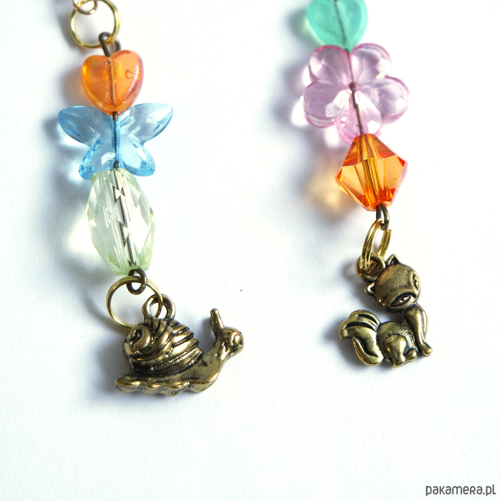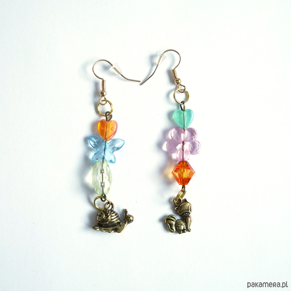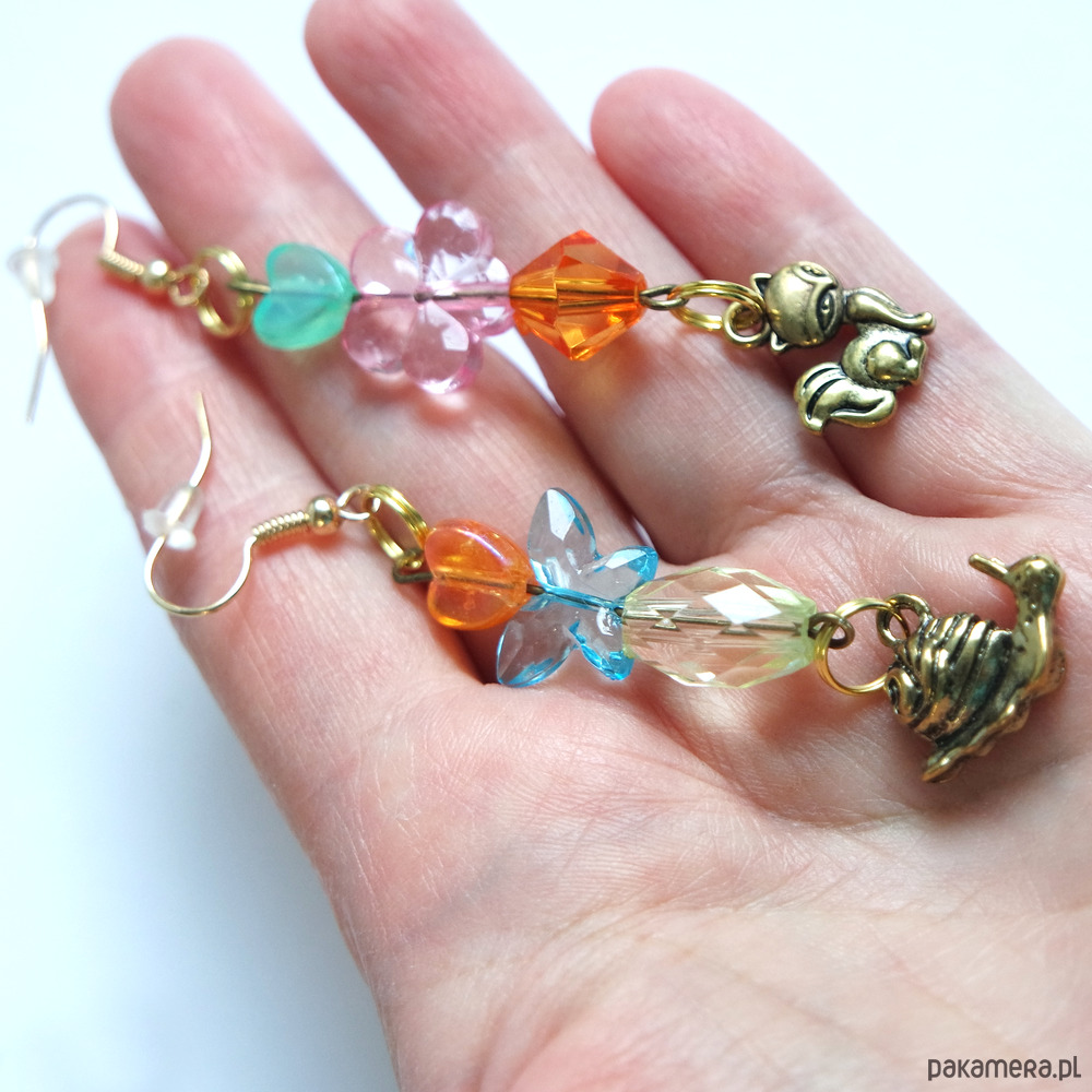 Kolczyki z kompozycją z koralików oraz zawieszkami.