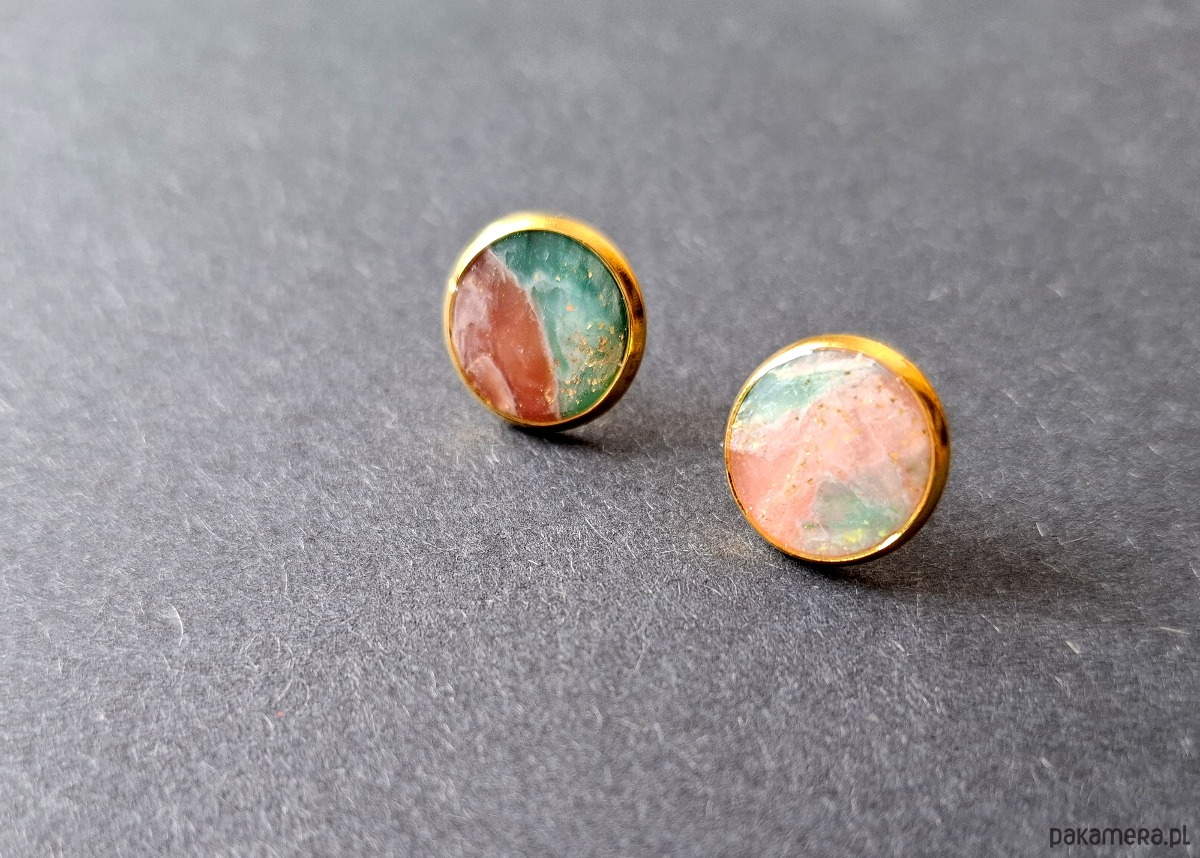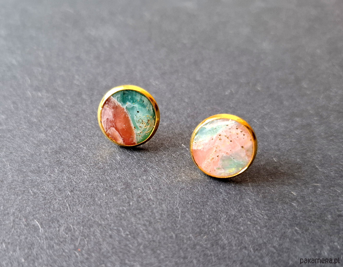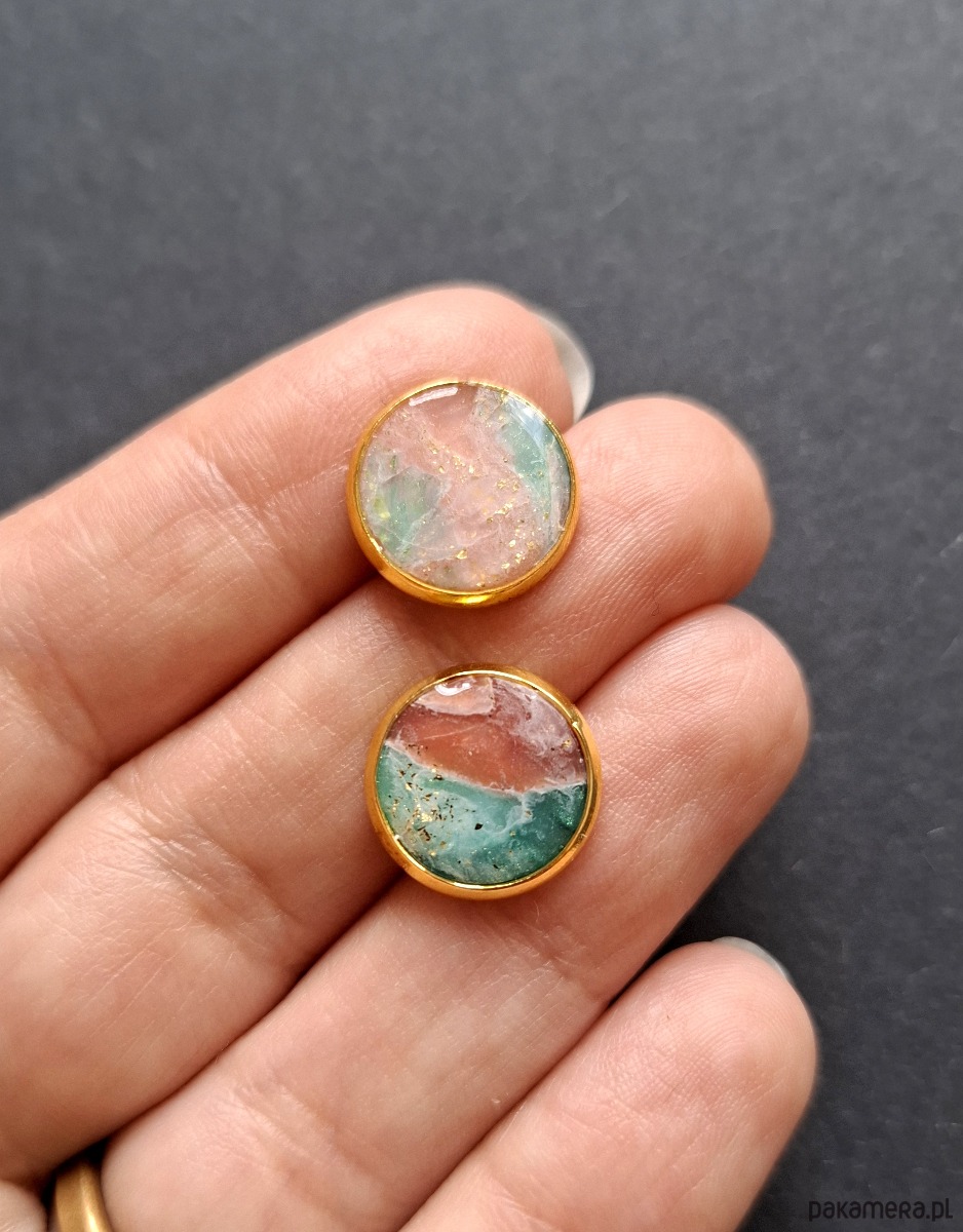 Drobne, ozdobne sztyfty wykonane z wysokiej jakości glinki polimerowej. Sztyfty o bazie pozłacanej, nieuczulającej z zapięciem na klasyczne baranki.