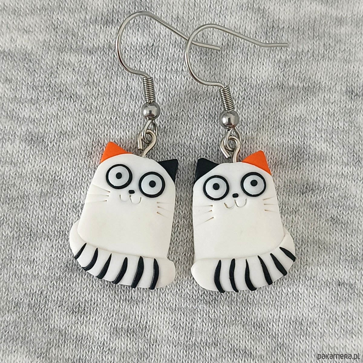 Wywołaj uśmiech na swojej twarzy dzięki tym uroczym, ręcznie wykonanym kolczykom z kotkami, które są idealne dla dzieci, nastolatków oraz wszystkich miłośników kotów w zabawnym stylu! Każda para przedstawia oryginalnego czarno-białego kotka o szeroko otwartych oczach i różnych uszach – jedno pomarańczowe, drugie czarne – co nadaje im naprawdę unikalny i figlarny wygląd.