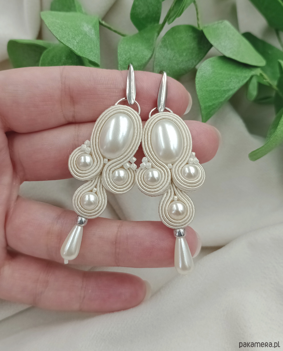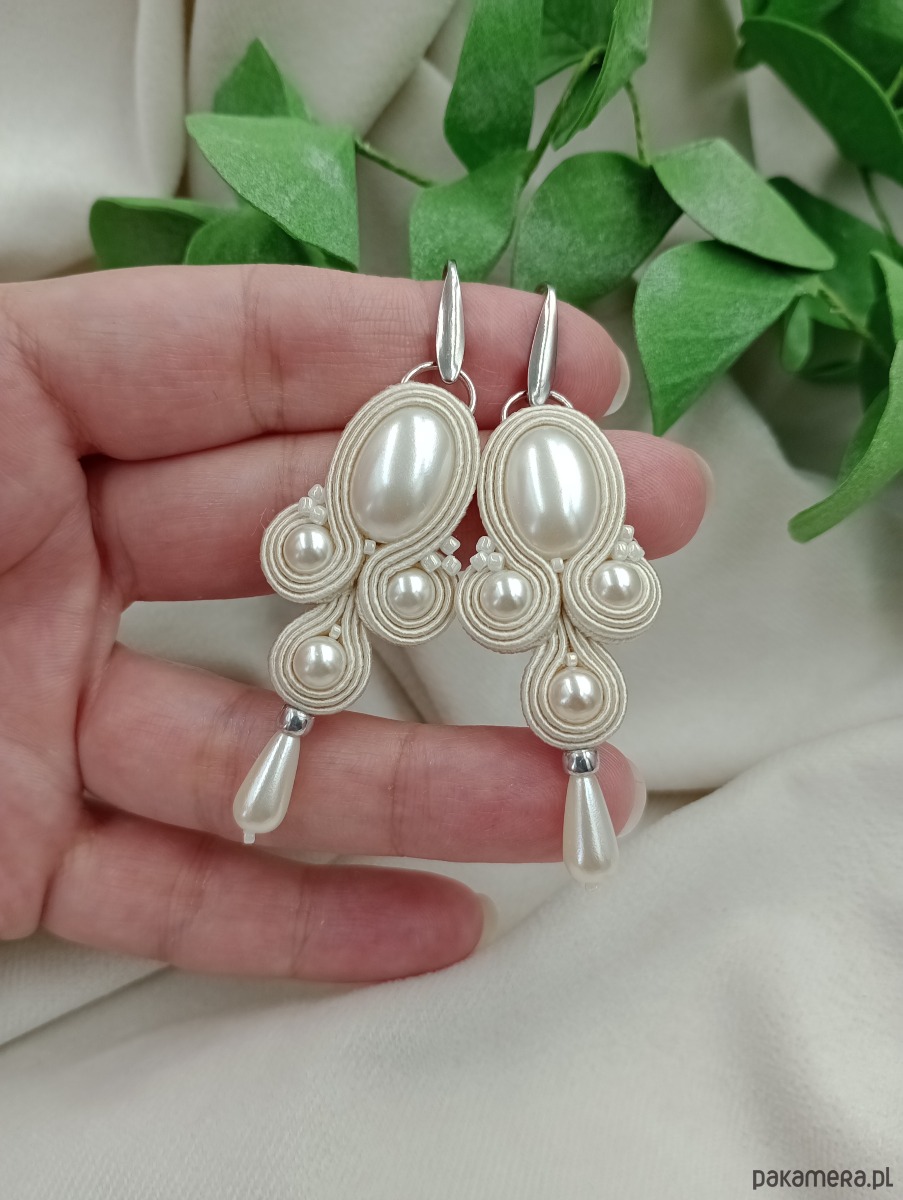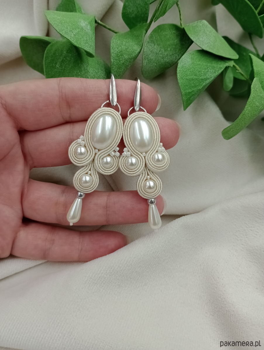 Kolczyki śmietankowe perłowe, kremowe perły, kolczyki soutache