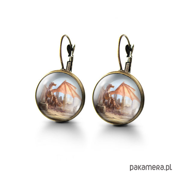 Średnica miniaturki grafiki 16 mm, długość kolczyków ok. 3 cm.