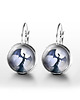 Grafika ukryta w prostych, eterycznych kolczykach, pod osłoną przeźroczystego półokrągłego szkiełka.