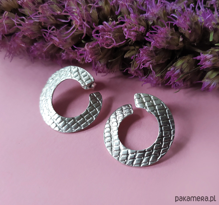 Powierzchnia srebra ma ciekawą fakturę, przypominającą skórę wężą,co sprawia że kolczyki mają ciekawą fakturę.