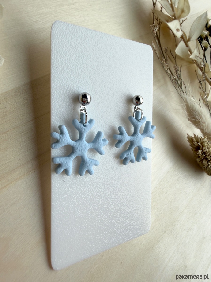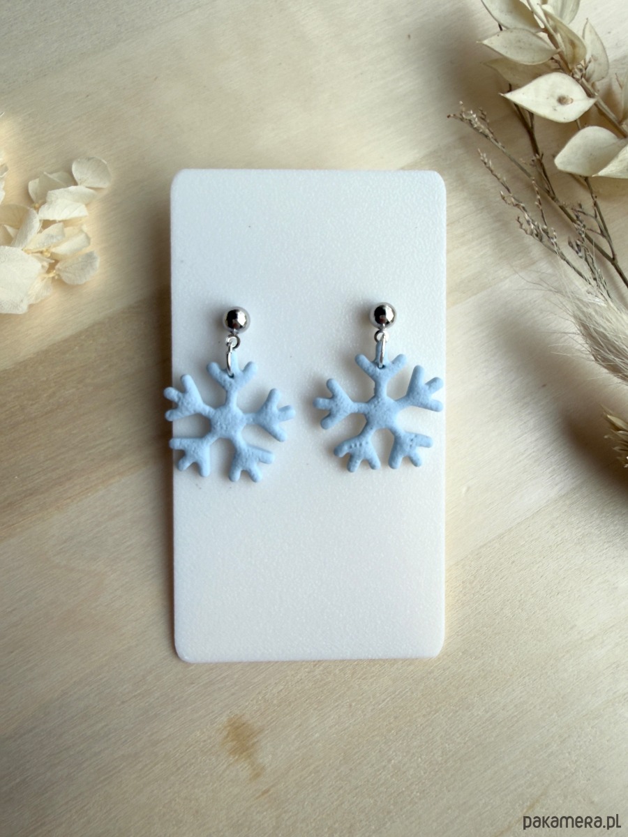 Wprowadź się w zimowy, bajkowy nastrój z limitowanymi kolczykami w kształcie błękitnych śnieżynek! Ręcznie wycinane elementy z gliny polimerowej mają delikatnie fakturowaną powierzchnię, a metalowe części wykonano ze stali chirurgicznej – odpowiednie także dla osób z wrażliwą skórą.
