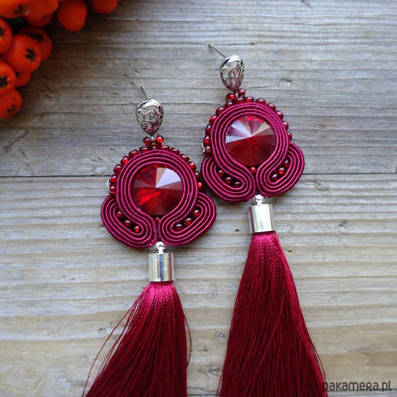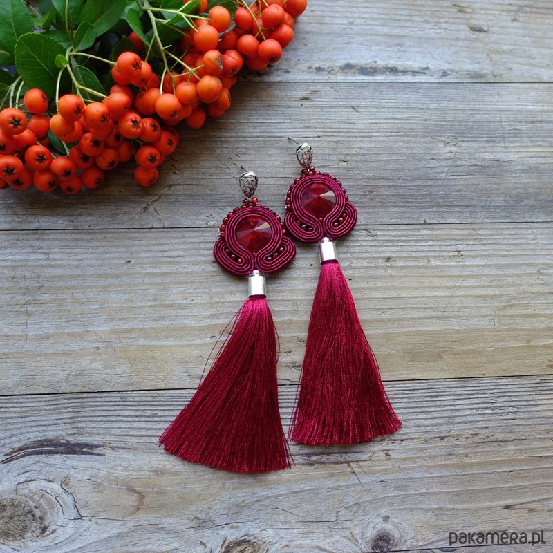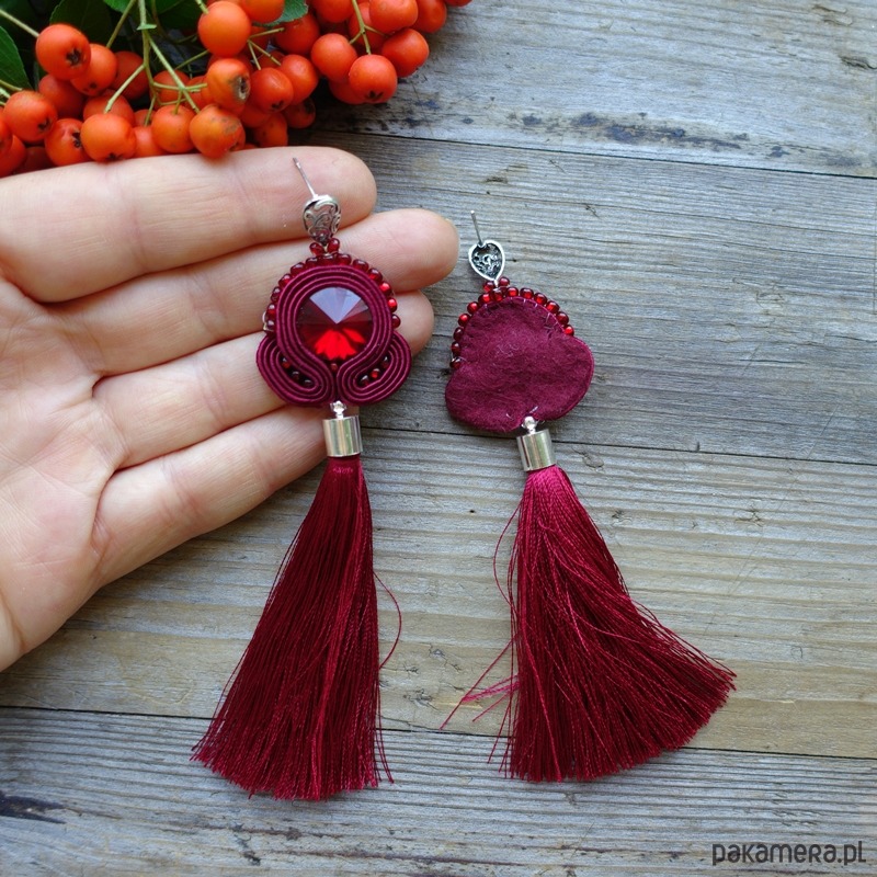 Kolczyki wykonane metodą haftu sutasz (soutache).