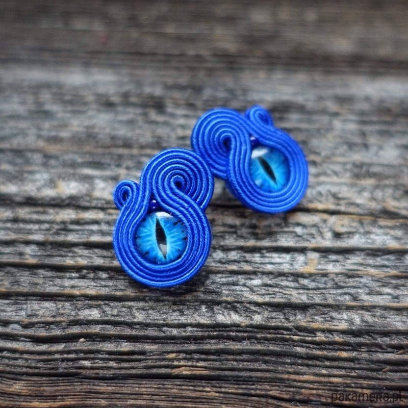 Materiały: sznureczki sutasz, szklane kaboszony oczy, sztyfty ze stali chirurgicznej;