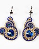 Piękne kolczyki z sutaszu - w połączeniu szafiru i złota z cyrkoniami swarovskiego. Długość 4,5 cm. Zawieszone na antyalergicznych biglach, możliwość wymiany na klipsy lub sztyfty.