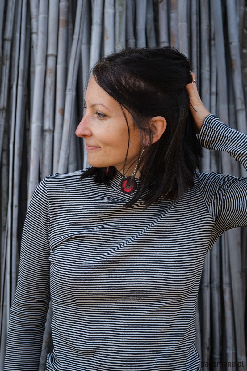 Kolczyki wykonane własnoręcznie z przyjemnej w dotyku bawełny oraz ze stali szlachetnej chirurgicznej.