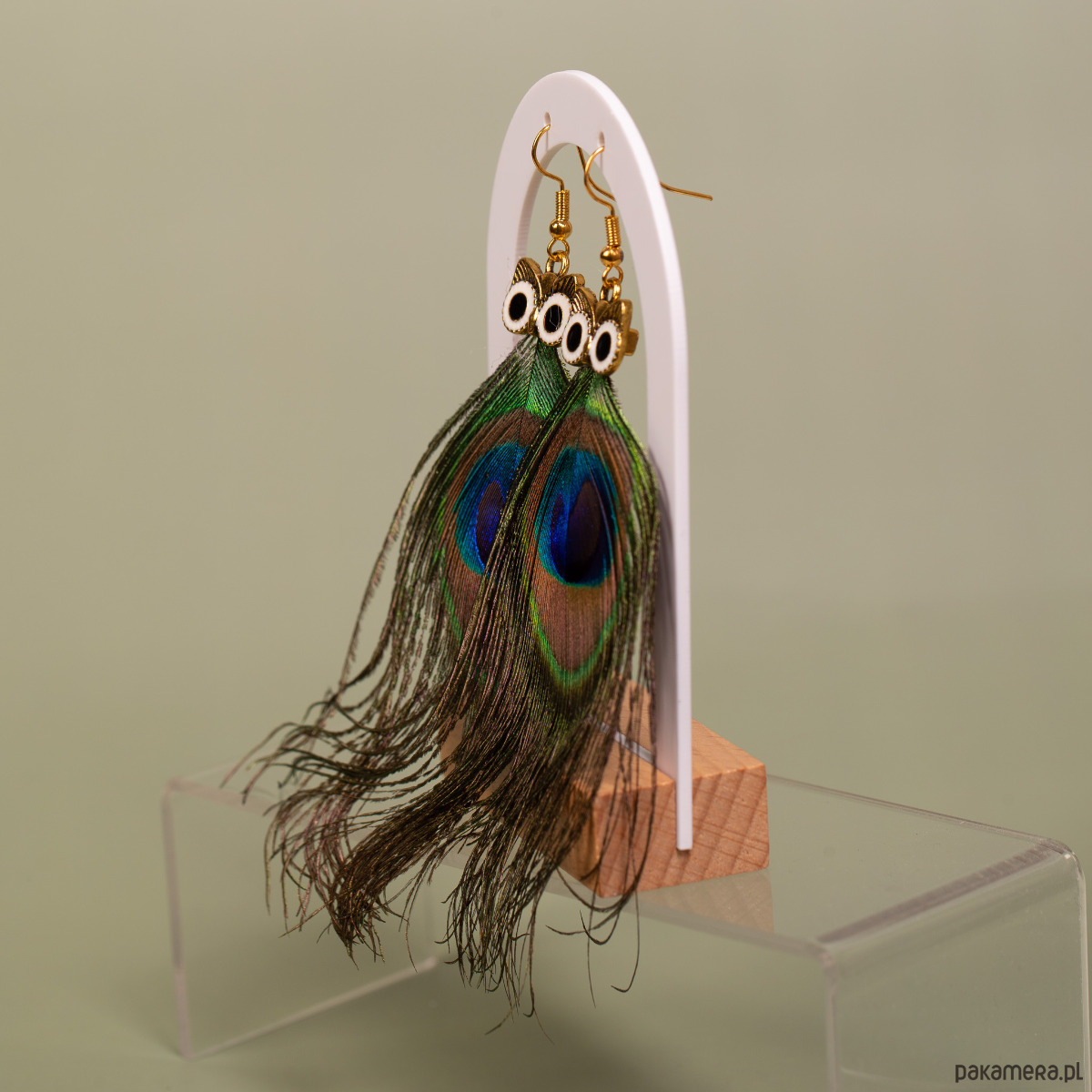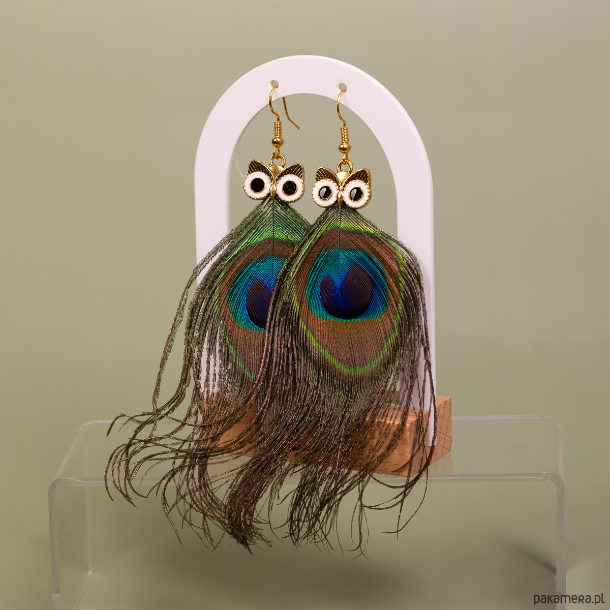 Kolczyki sowy pióra pawia